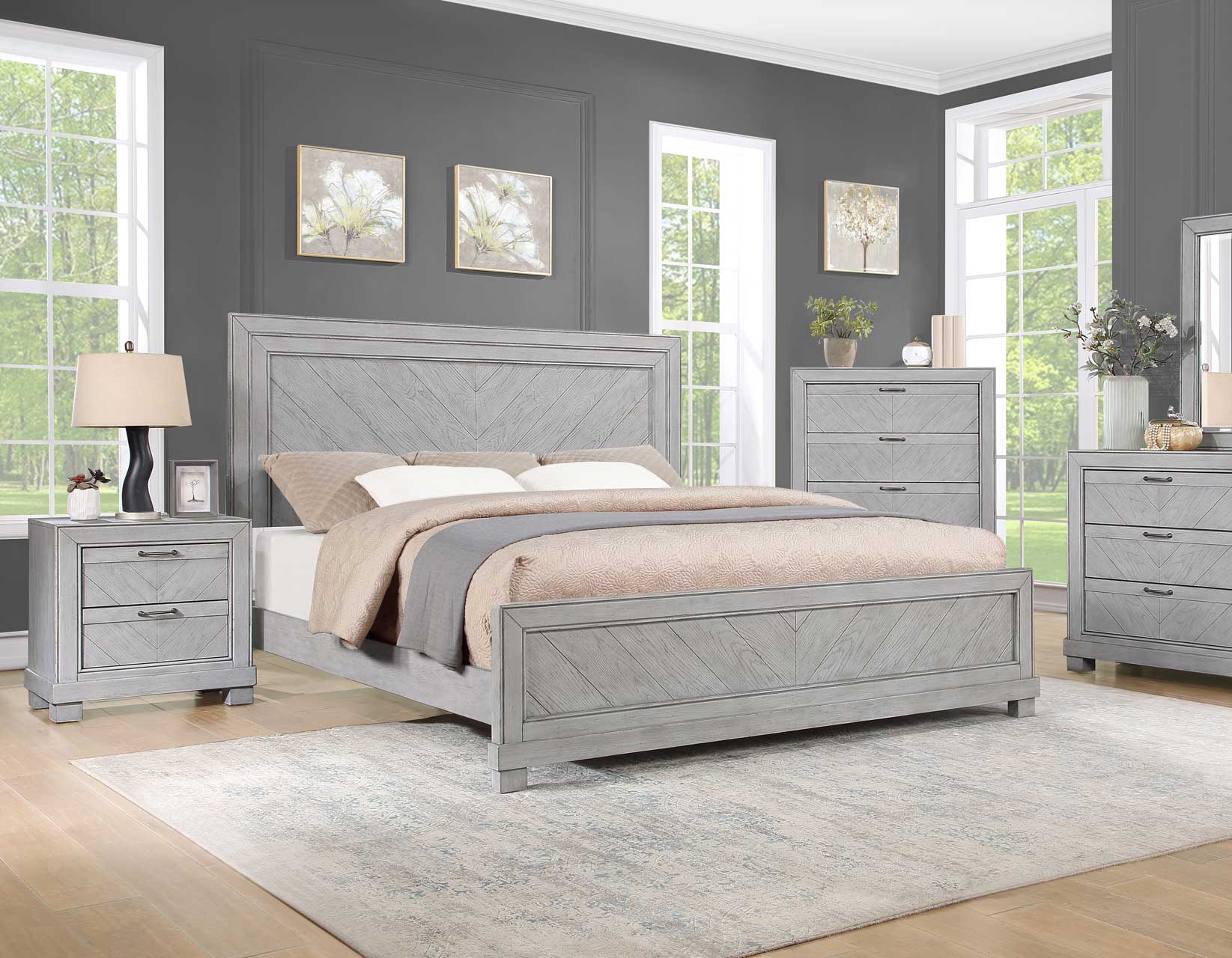 Zyniden King Upholstered Panel Bed with Mirrored Dresser and Chest