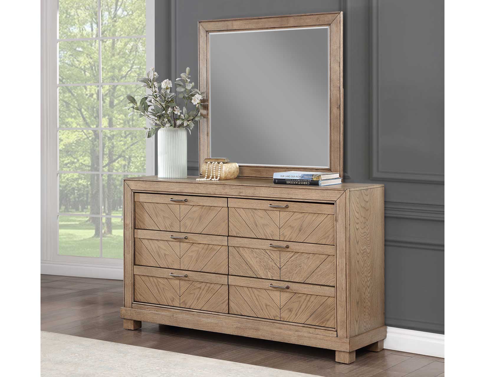Primitive rustic design in a storage piece for the bedroom, Montana is finished in a weathered sand stain with satin nickel hardware in a relaxed aesthetic for casual bedroom decors. Six deep drawers with felt-lined top drawers offer plenty of storage with fully extendible drawers for optimizing the space. Pair with a Montana Mirror or use as a bedroom entertainment piece. Either way, you will love the way Montana dresses up your bedroom.