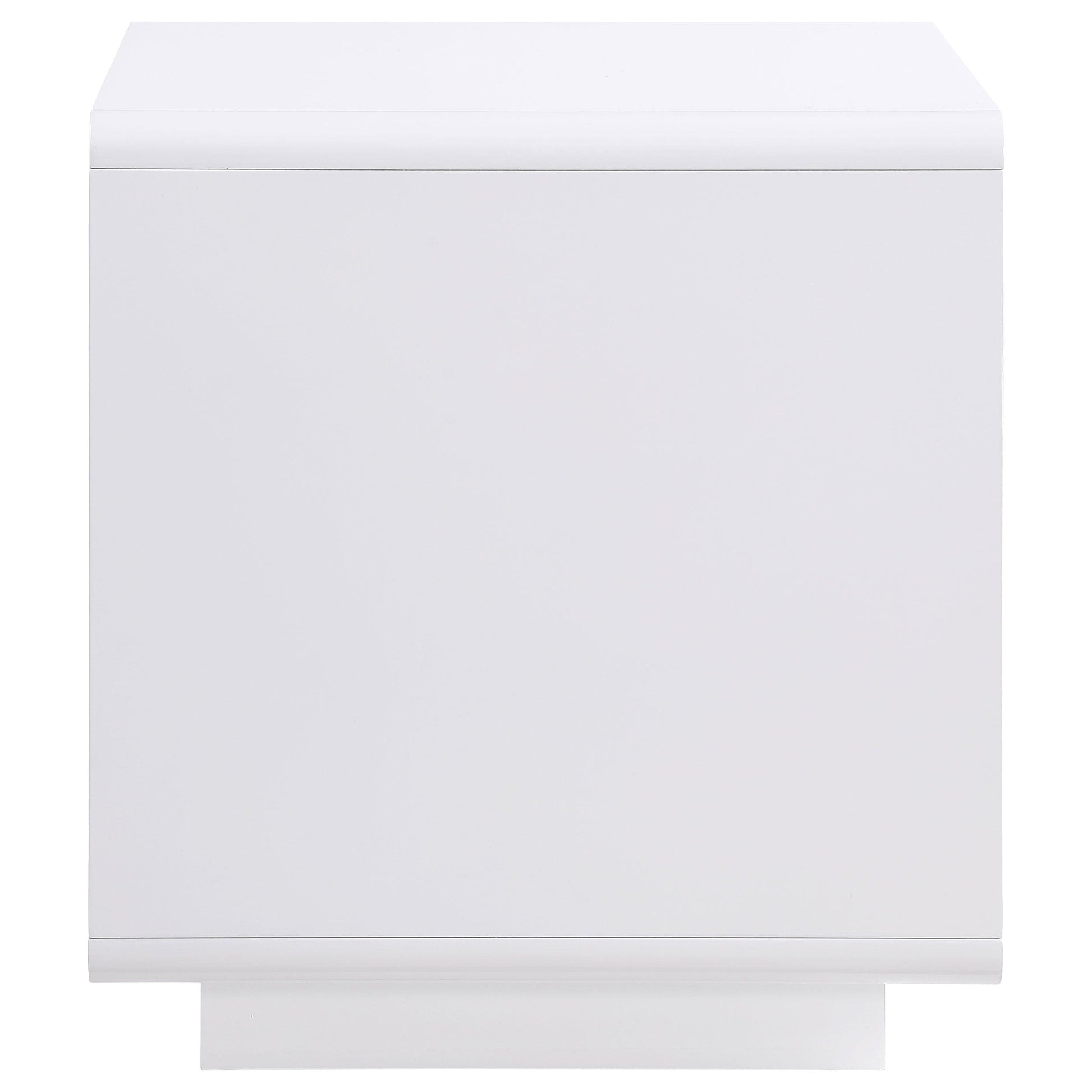 This matching end table continues the refined aesthetic with a white high gloss finish over engineered wood. Its compact form works perfectly as a side table or occasional table, while the open shelf adds convenient utility. As an accent table or utility table, it seamlessly aligns with the coffee table’s sleek presence, enhancing a cohesive, modern living room setting.