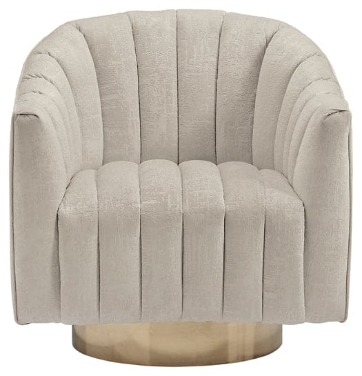Textured velvet gets a contemporary edge in this swivel accent chair. Neutral enough to fit into any space, the subtle design of the upholstery brings modern style to the surface.