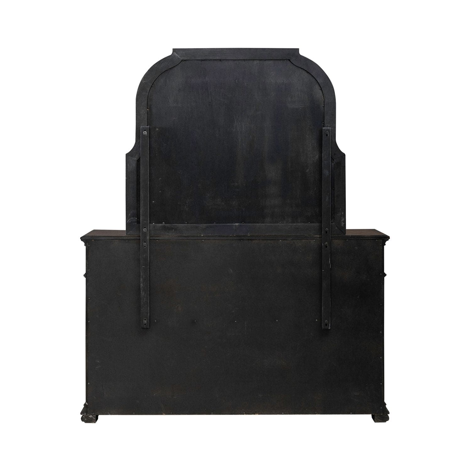The Provence Park dresser and mirror is a symphony of design and functionality that brings an air of sophistication to your bedroom. Crafted with meticulous attention to detail using Rubberwood solids and Split Heart Hickory veneers, this set features a Chateau Brown finish. This dresser is not just a storage solution; it's a statement piece that seamlessly blends classic aesthetics with modern convenience. The serpentine-shaped top drawers of the dresser immediately catch the eye, adding a touch of elegance to the overall design. These gracefully curved drawers create a sense of fluidity, making a striking visual impact. The square turned pilasters, flanking the dresser, boast graduated bead molding that adds a layer of dimension, showcasing meticulous craftsmanship and attention to detail. Each drawer is framed with bead molding accents, creating a cohesive and refined look. The custom antique brass knob and bail hardware add a vintage touch, infusing the dresser with a sense of timeless charm. Opening and closing the drawers becomes a tactile pleasure, thanks to the soft-closing drawer guides, adding a touch of luxury to the dresser's functionality. The top drawers of the dresser are lined with premium felt, providing a plush environment for delicate items. Meanwhile, the bottom drawers feature a cedar-lined panel, imparting a fresh aroma and natural protection to your clothing. This thoughtful design ensures that your dresser not only serves as a stylish storage solution but also as a sanctuary for your most cherished belongings. Attach the mirror to the dresser with the included bolt on supports. The mirror features softly curved sides and a one inch beveled edge for added sparkle. Elevate your bedroom décor and create a haven of luxury with the Provence Park 8 drawer dresser.