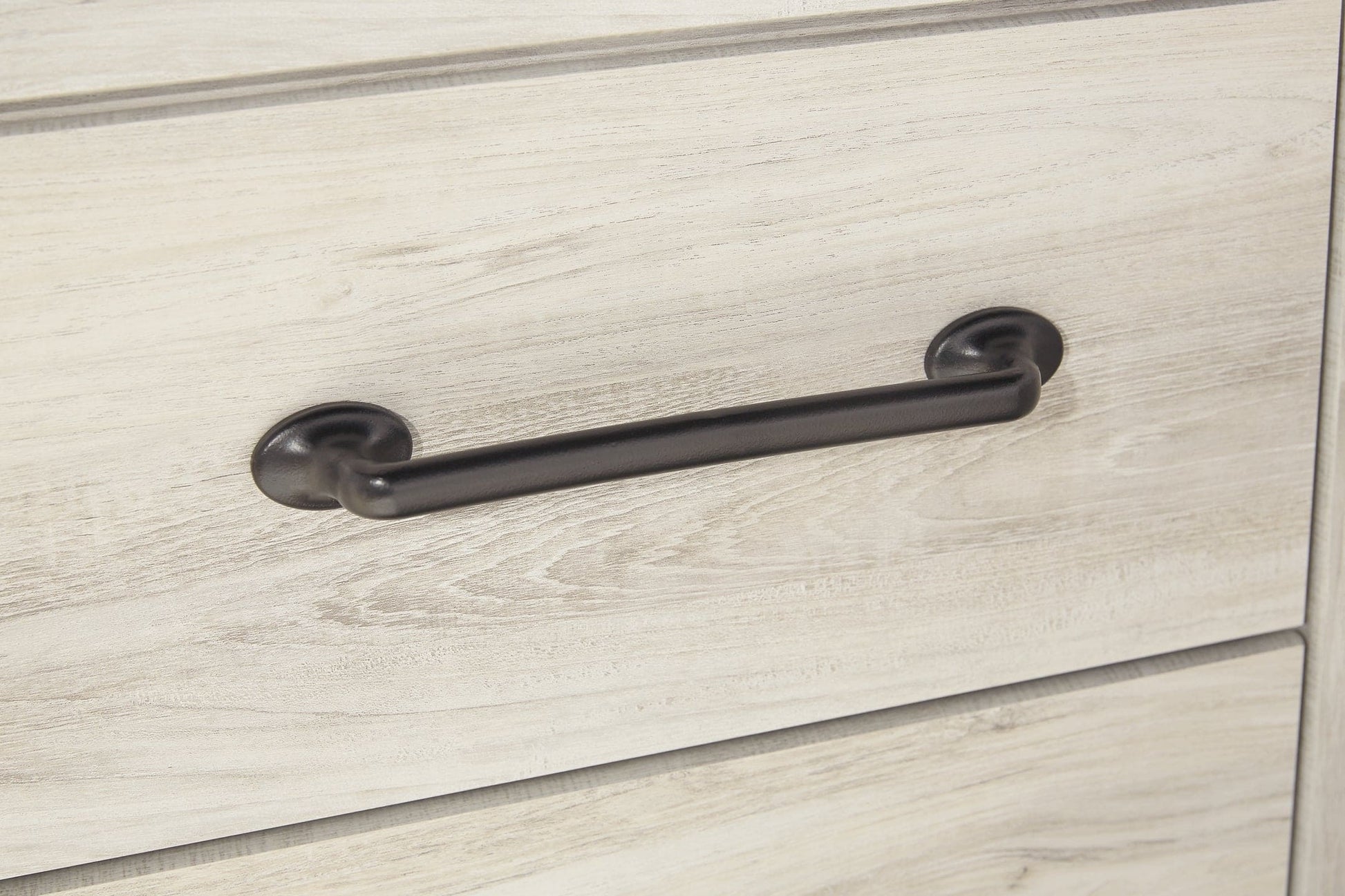 Details | B192-46: Made of engineered wood (MDF/particleboard) and decorative laminate, Wispy white finish over replicated oak grain with authentic touch, Large-scale hardware with dark finish, 5 smooth-gliding drawers, Drawer interiors are lined with a faux linen laminate for a clean, finished look, Safety is a top priority, clothing storage units are designed to meet the most current standard for stability, ASTM F 2057 (ASTM International), Drawers extend out to accommodate maximum access to drawer interior while maintaining safety, B192-92: Made of engineered wood (MDF/particleboard) and decorative laminate, Wispy white finish over replicated oak grain with authentic touch, Large-scale hardware with dark finish, 2 smooth-gliding drawers, Drawers lined with faux linen laminate for finished aesthetic, 2 slim-profile USB charging stations, Power cord included; UL Listed, B192B1: Includes dresser with mirror, Made of engineered wood (MDF/particleboard) and decorative laminate, Wispy white finish over replicated oak grain with authentic touch, 6 smooth-gliding drawers, Drawer interiors are lined with a faux linen laminate for a clean, finished look, Large-scale hardware with dark finish, Mirror attaches to back of dresser, Assembly required, B192B4: Includes headboard, footboard and rails, Made of engineered wood (MDF/particleboard) and decorative laminate, Wispy white finish over replicated oak grain with authentic touch, 2 decorative sconce lights, LED with 3 AA batteries, 2 slim-profile USB charging ports, Power cord included; UL-listed, Foundation/box spring required, sold separately, Mattress available, sold separately, Assembly required, Bed is compatible with an adjustable base, | |