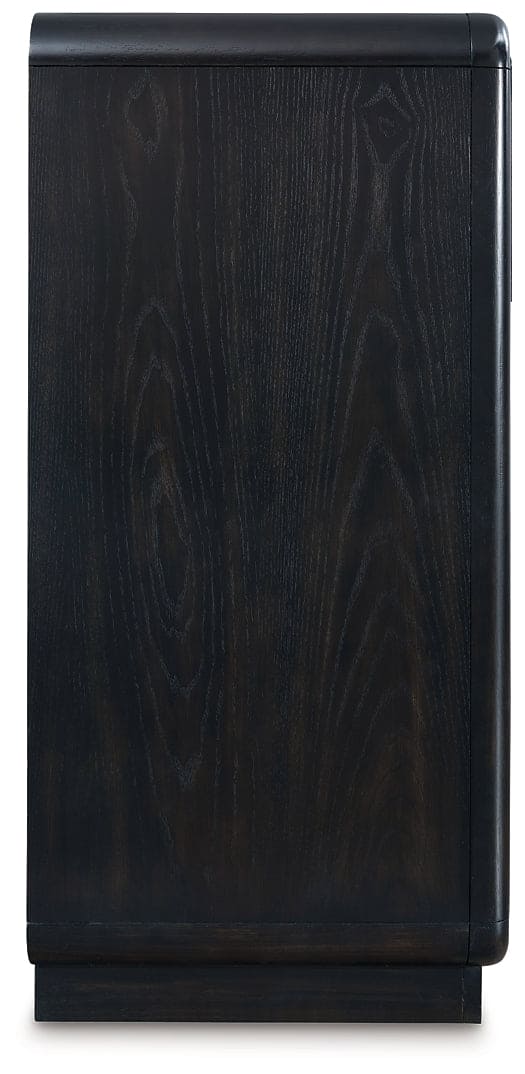 Inspired by art deco design, this softly shaped dresser makes a lasting impression in a simply stunning way. Its magnificent curved silhouette is enhanced by a rich layered black finish on the textured wood grain surface. This is the statement piece you’ve been dreaming of to elevate your contemporary inner sanctum.