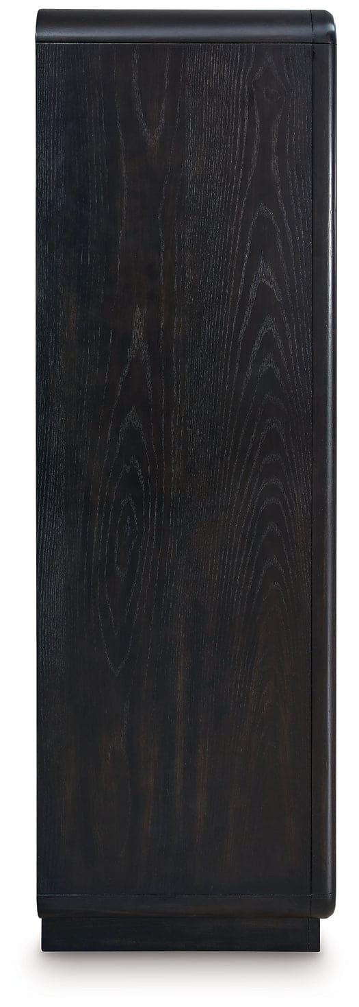 Inspired by art deco design, this softly shaped chest of drawers makes a lasting impression in a simply stunning way. Its magnificent curved silhouette is enhanced by a rich layered black finish on the textured wood grain surface. This is the statement piece you’ve been dreaming of to elevate your contemporary inner sanctum.