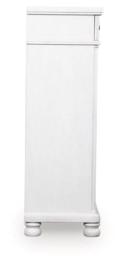 | Details | Made with hardwood solids, veneers and MDF substrates, Rubbed antiqued white finish, Metal hardware with pewter-tone finish, 5 smooth-gliding drawers with fully finished interiors, French/English dovetail construction and heavy-duty ball-bearing side glides, Top drawer felt lined | |