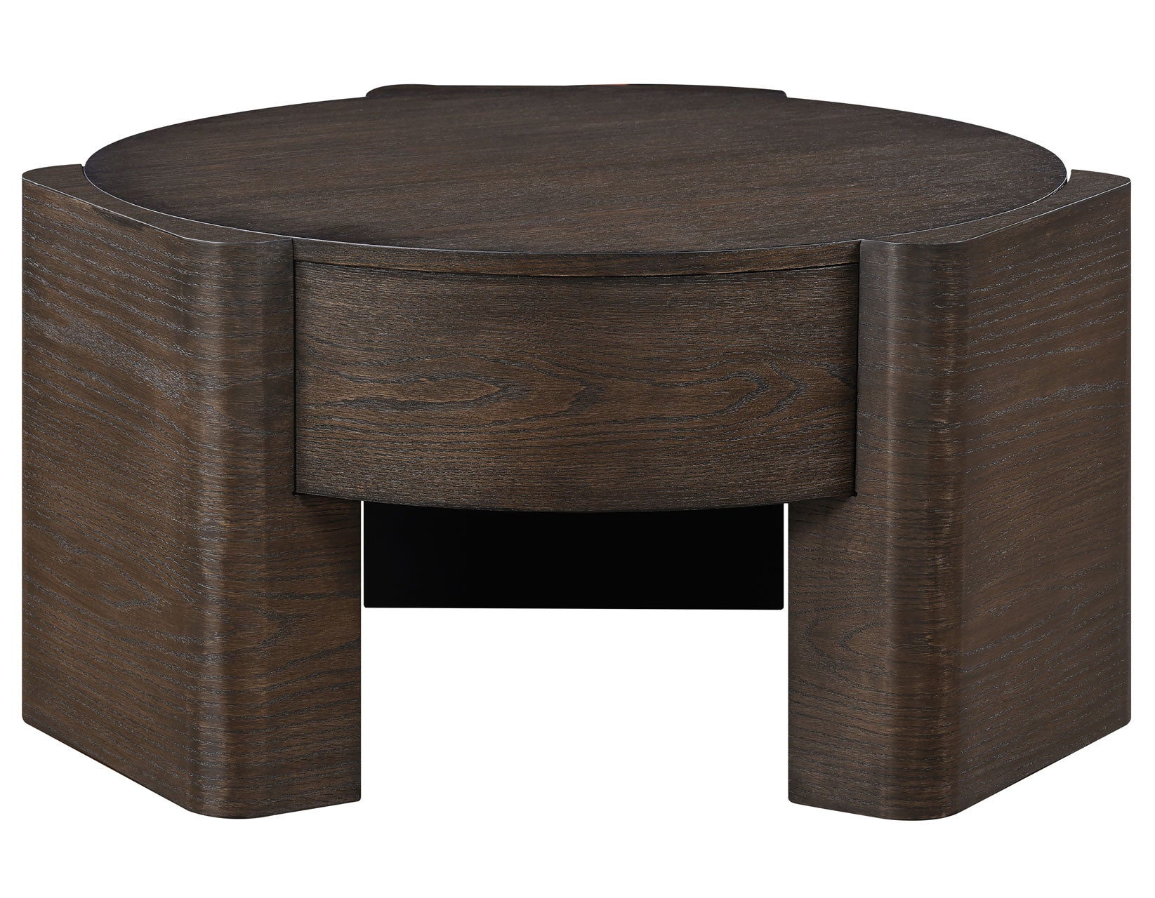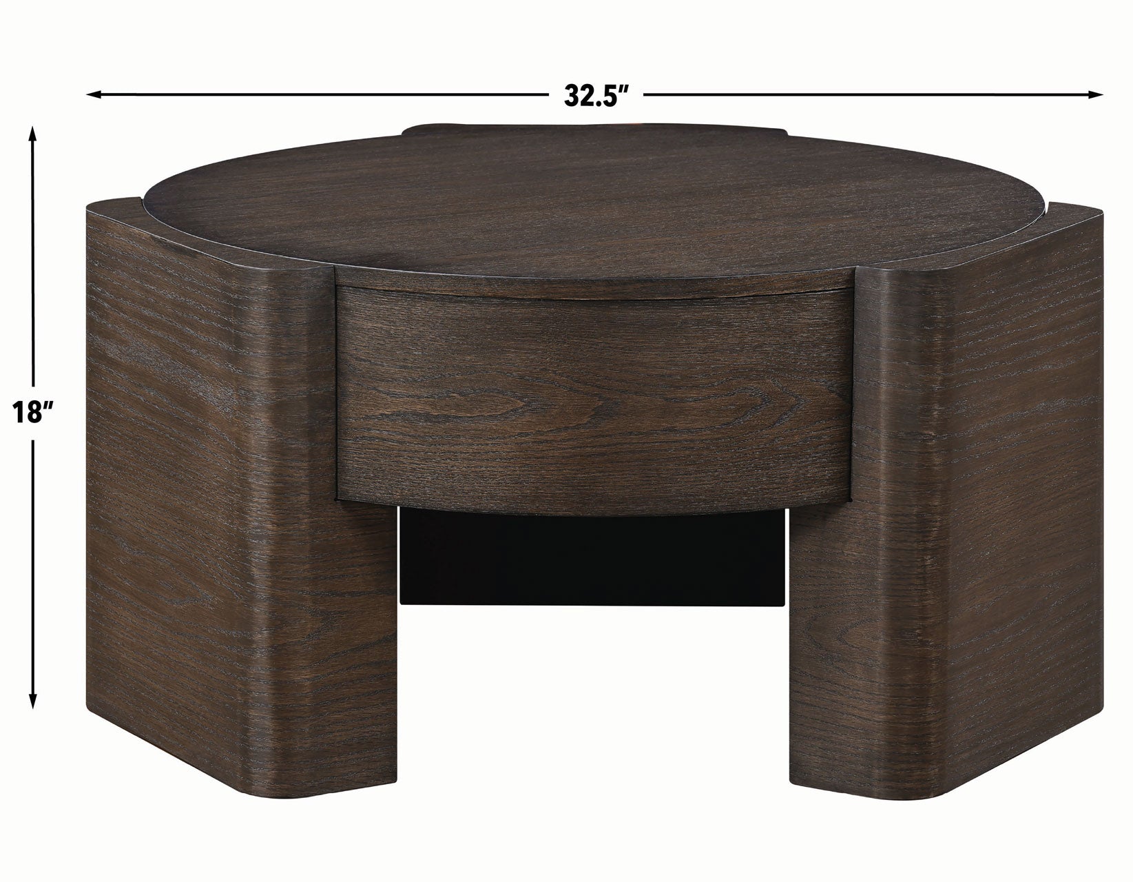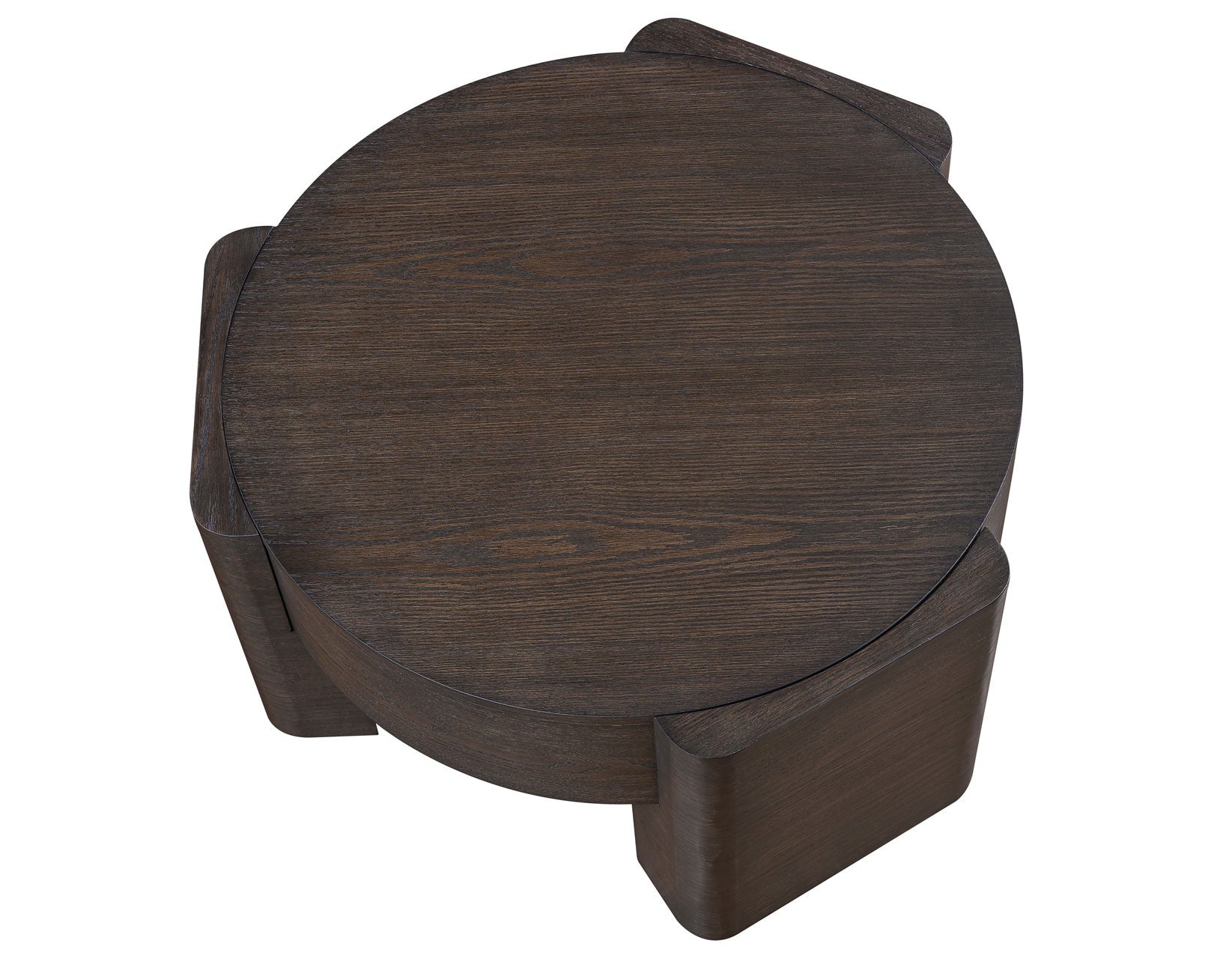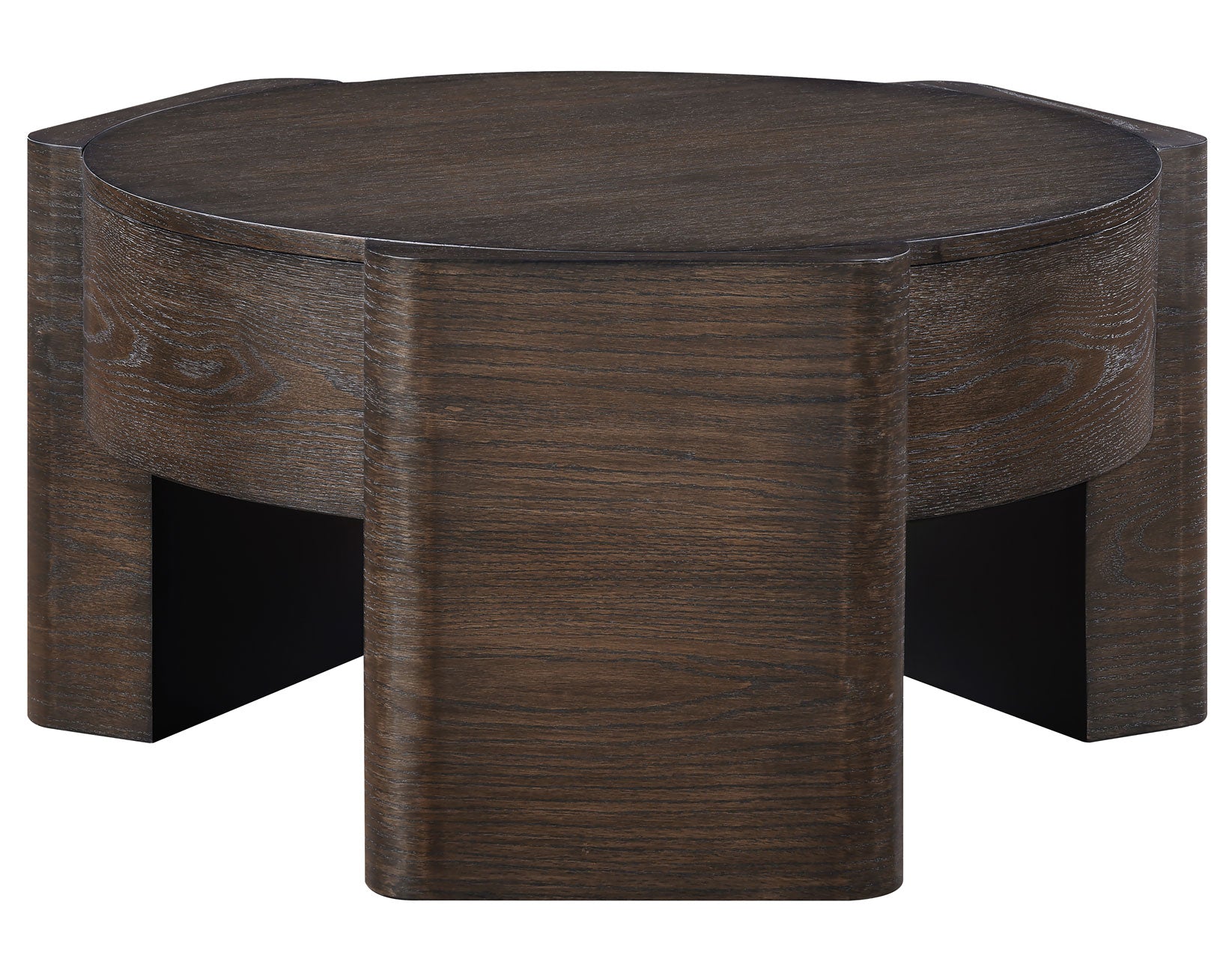 Modern and architectural, the Salina 32.5″ Round Coffee Table blends sleek lines with substantial presence. Crafted from oak veneers and solid Asian hardwoods in a rich espresso finish, it brings warmth and refinement to any space. The smooth, flush-edge top creates visual interest, while the round shape softens room layouts and eliminates sharp corners. Six hidden casters offer easy mobility for cleaning or rearranging, adding practical versatility to its stylish form.