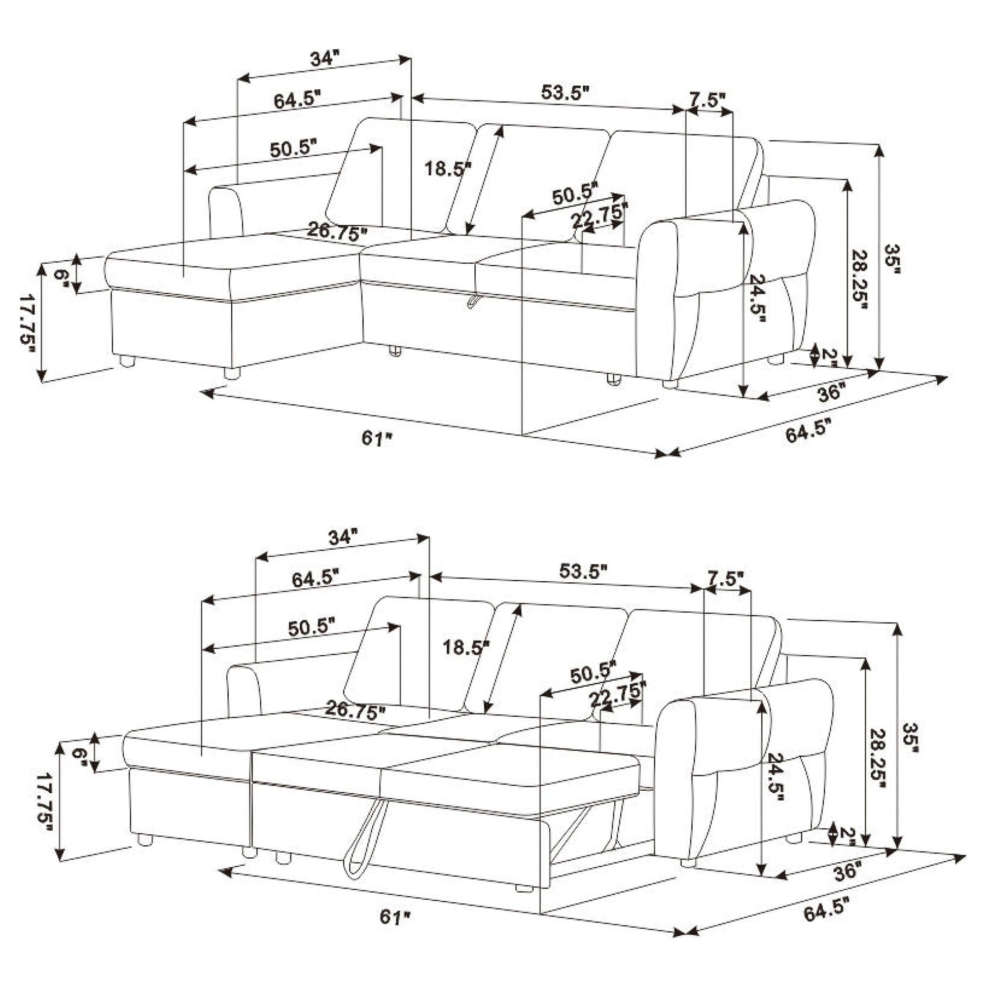 Samantha Upholstered Storage Sleeper Sectional Sofa Grey