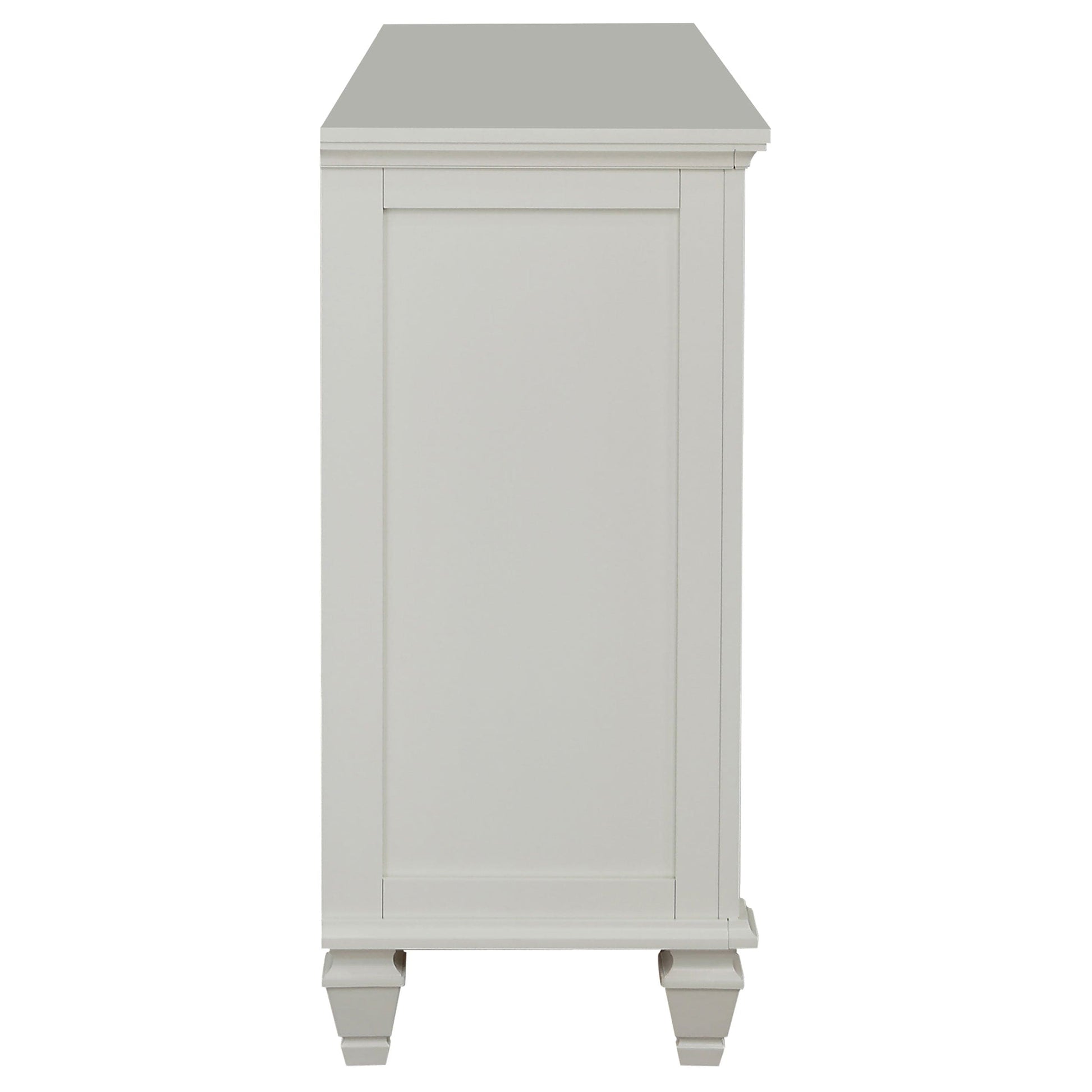 • Dresser features two wood-framed tempered glass doors and eleven spacious drawers for ample storage