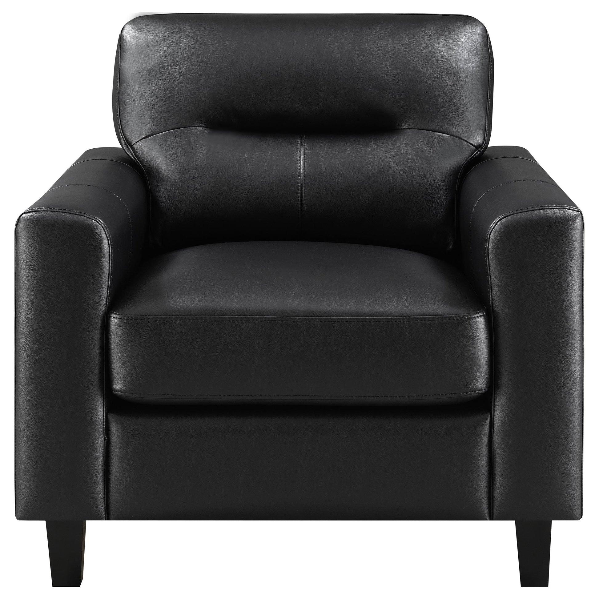 • Black leatherette upholstery defines each piece with soft matte uniformity