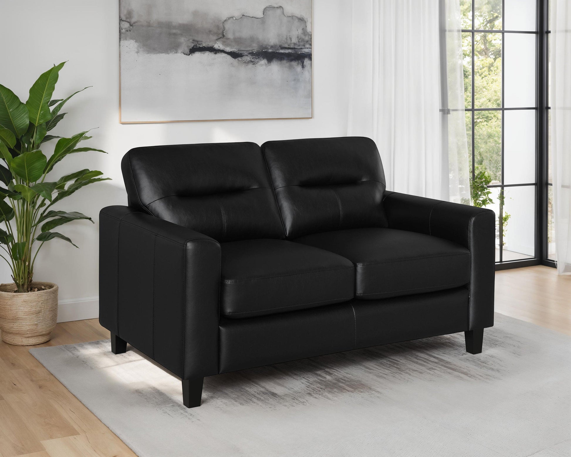 Scotland Faux Leather Upholstered Track Arm Loveseat Black