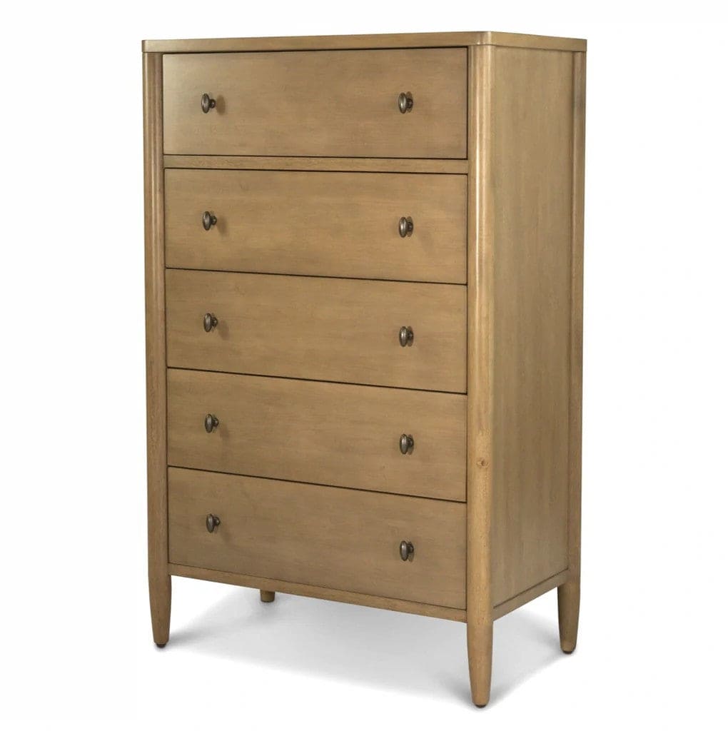 The Chatham Collection combines timeless elegance with thoughtful design. Finished in warm maple, the bed features a 45" headboard for ideal window clearance, complemented by soft return posts and dark pewter "cats eye" hardware. Felt-lined top drawers with jewelry trays, cedar-lined bottom drawers, and recessed side panels add luxurious touches. Nightstands offer modern convenience with USB/USB-C ports. A perfect blend of beauty, comfort, and practicality for any bedroom.