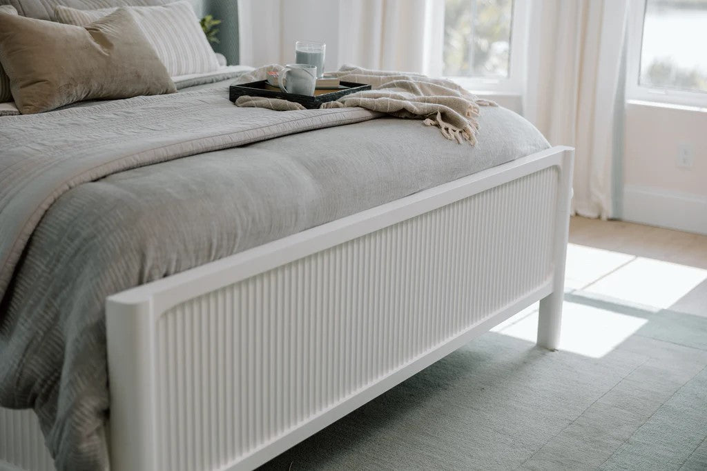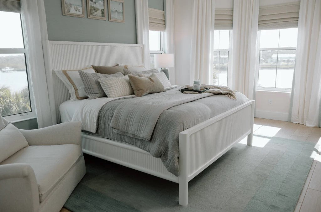 Introducing our Montauk Bed, a timeless centerpiece in white finish solid wood, detailed throughout. Complete with headboard, footboard, and siderails, it offers a comprehensive solution for your bedroom. Laser-cut finishes add a touch of sophistication. Versatile in design, it seamlessly fits coastal transitional, coastal, or transitional settings, elevating any décor with grace and style. Experience the perfect blend of versatility and elegance with our Montauk Bed, transforming your bedroom into a haven of comfort and luxury.