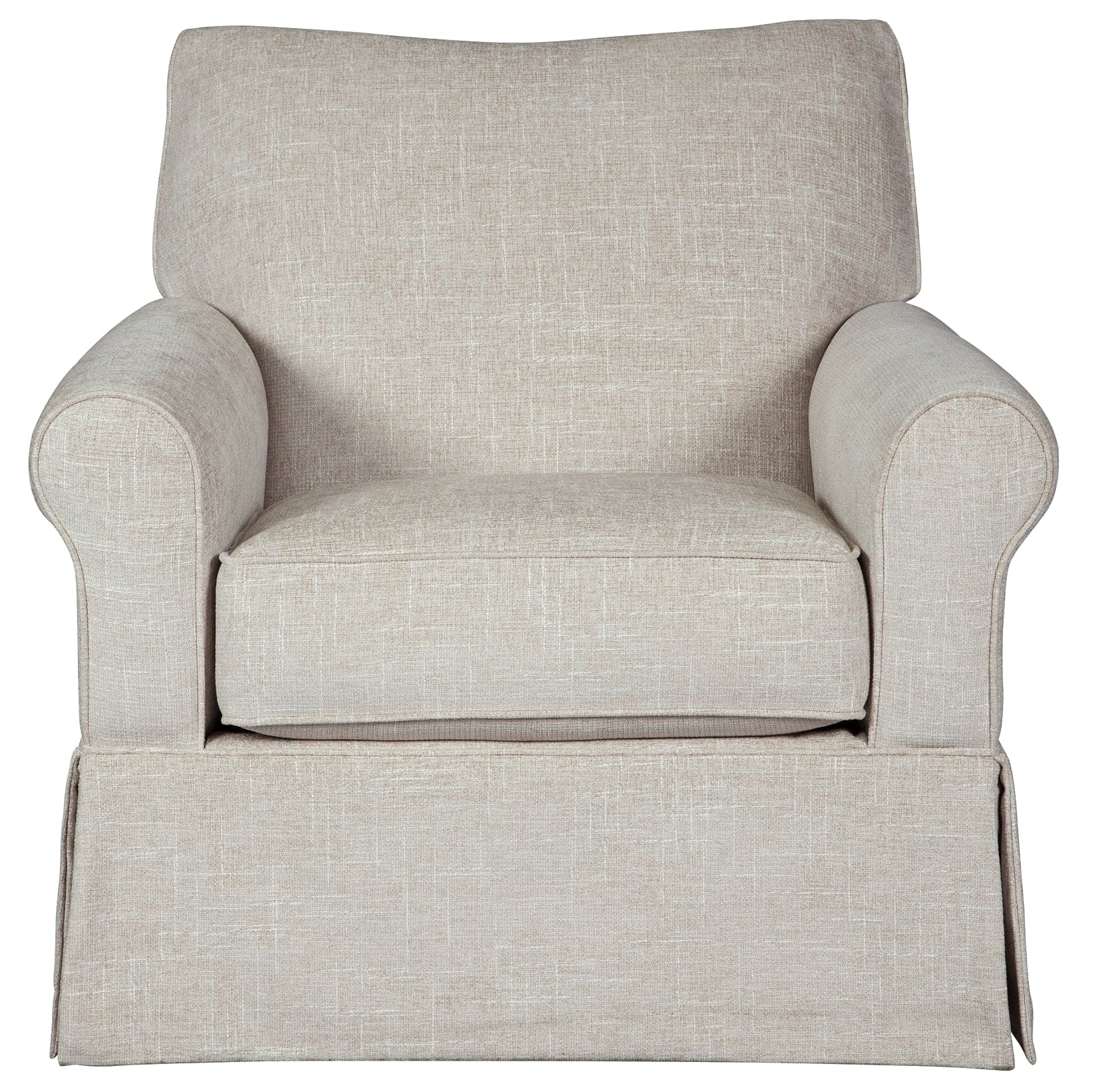 Thanks to its tailored skirt, this swivel glider accent chair sure doesn’t look like it can do a 360, but you’ll love the fact that it can. Whether your style is shabby chic, modern farmhouse or American classic, this swivel chair is sure to be sitting pretty.