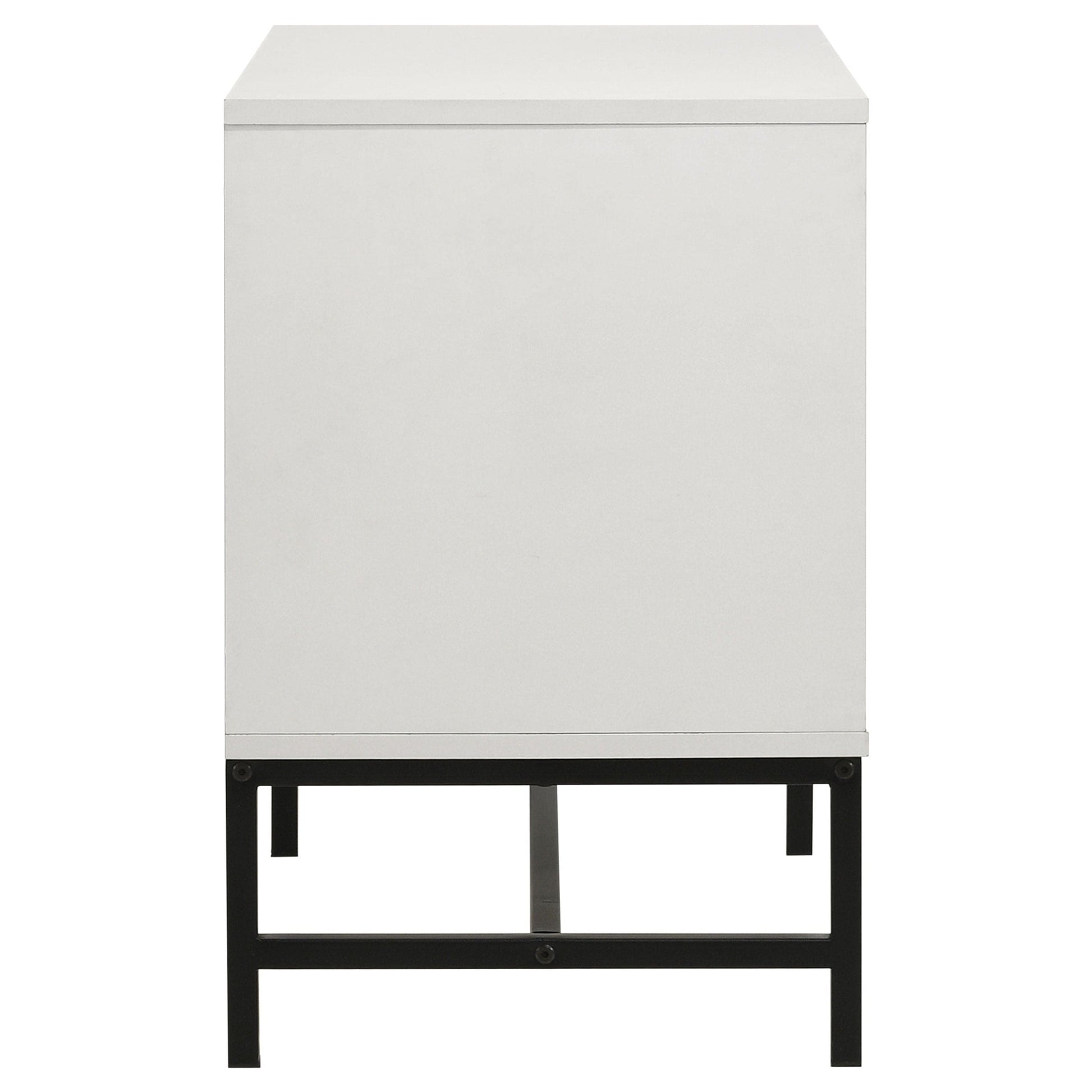 Put a fresh spin on bedside storage with a modern two-drawer nightstand. It shows off a clean, straight-lined silhouette, complete with easy drawers for nighttime essentials and personal items. Its wide top is big enough for a clock, reading lamp, and other items, creating a stylish display in your contemporary bedrooms. The nightstand is augmented with a black finish base with slim, straight lines, and bar pulls, adding appealing contrast and dimension. Choose this nightstand for a sleek, simple look in a minimalist space.