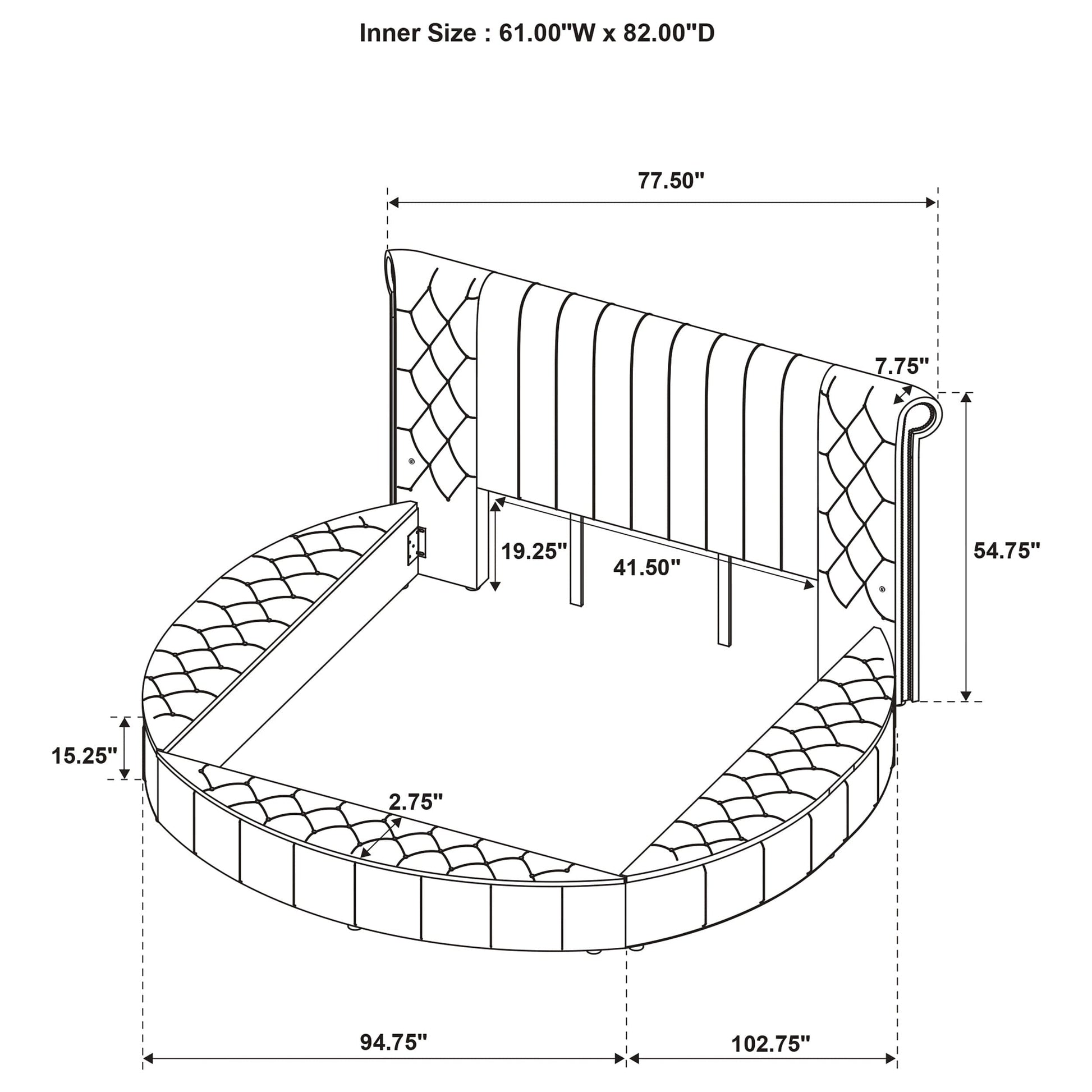 • Round bed features a fully upholstered frame with hidden storage beneath lift-up panels
