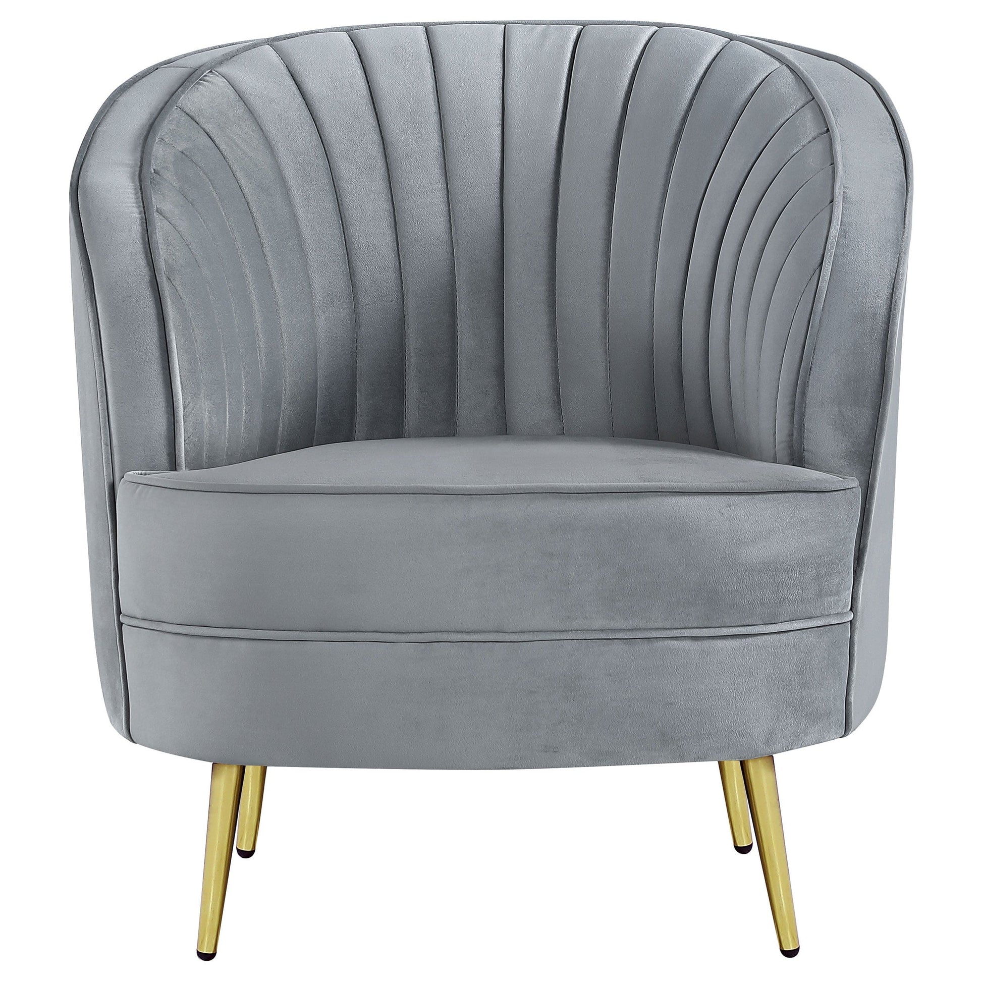 Inspired by a glam version of mid-century artistry, this three-piece sofa set offers all that’s needed to begin a romantic living space motif. Give a living room or family room its best design life with this set built with frames fully encased in solid wood and covered in decadent gray velvet. Vertical channeling on back interiors highlights the iconic kidney shape of its sofa and loveseat and add dimensionality to an extra comfy accent chair. Set atop slender, tapered legs fashioned of gold finish stainless steel, each piece reflects the parlor look of upscale retro furnishings. Set includes one sofa, one loveseat, and one chair.