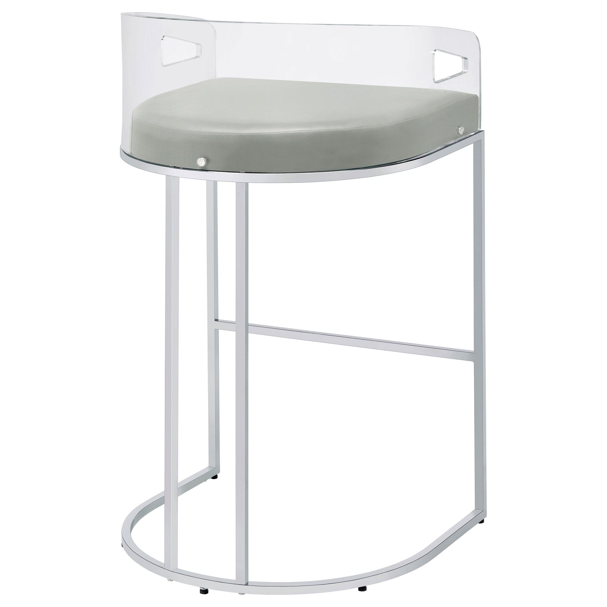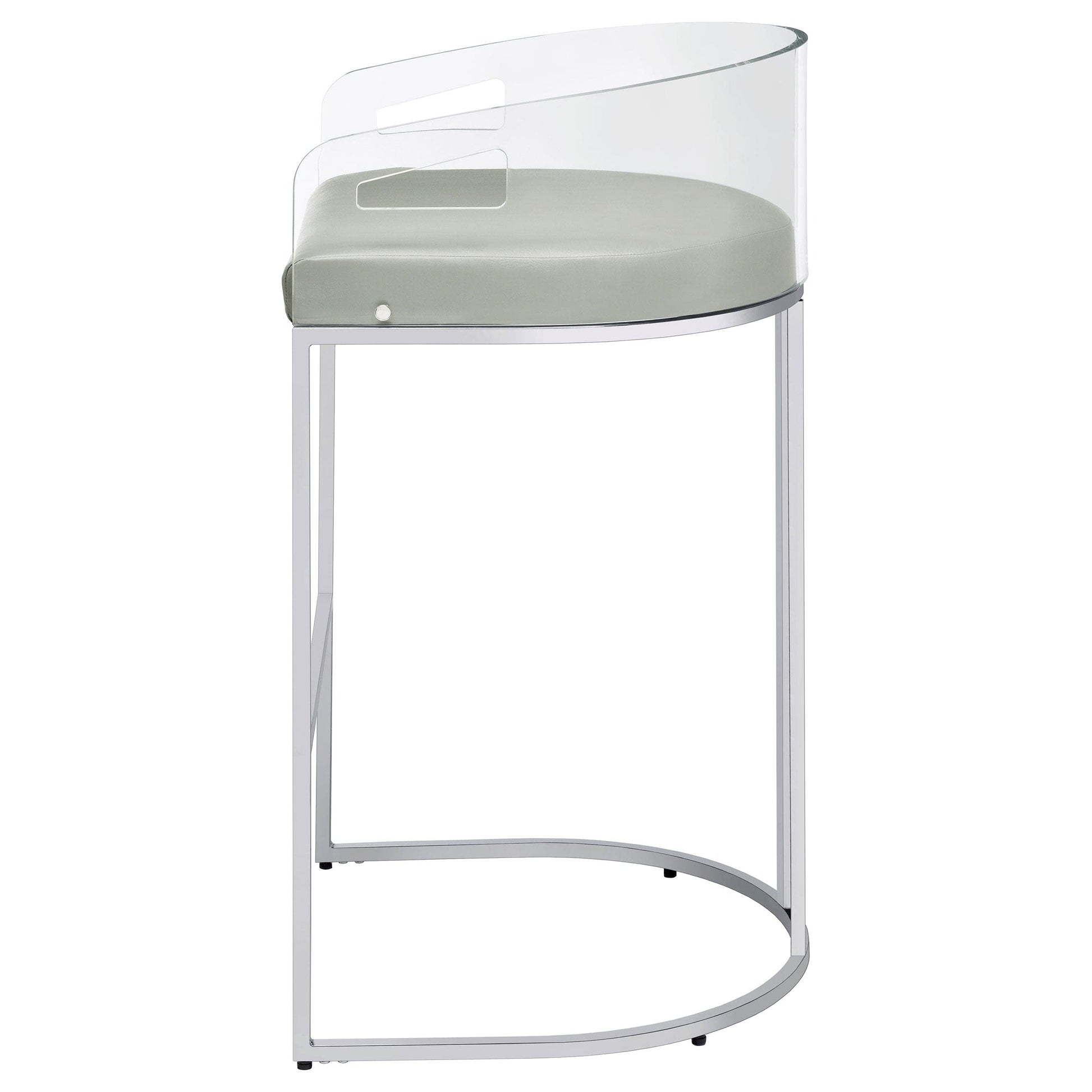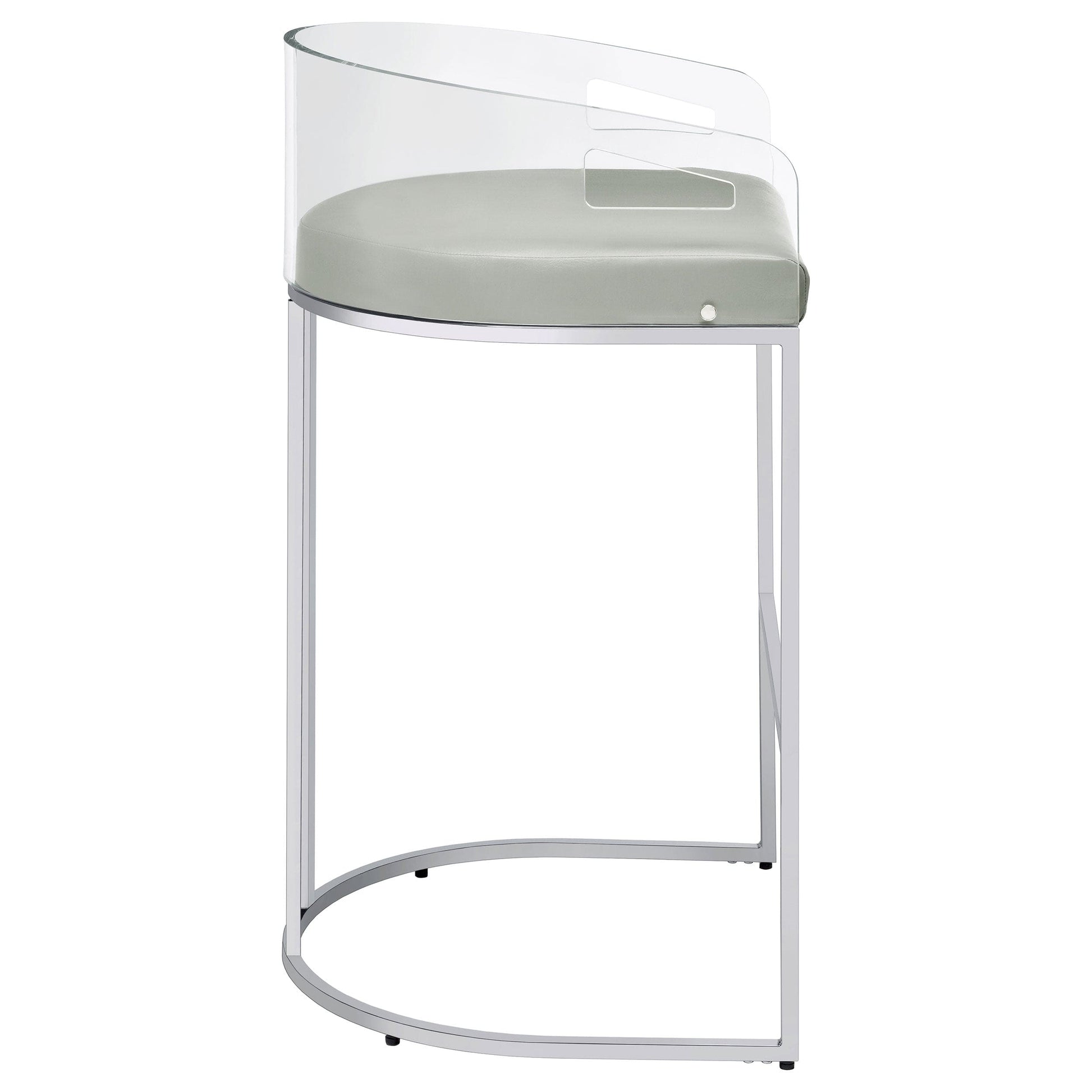 Ultra-modern with a retro-inspired vibe, this pair of stools make a striking piece to a dining room space. With a curved backrest in a clear acrylic material, each stool offers an open and airy design. Rest comfortably on a leatherette cushion as you dine or sip a cocktail. In addition, each stool is supported by a slim metal legs in a lustrous chrome finish and a base shape that mimics the rounded acrylic backrest. Pull up a pair of these stools to a kitchen bar or complete a compact home bar.