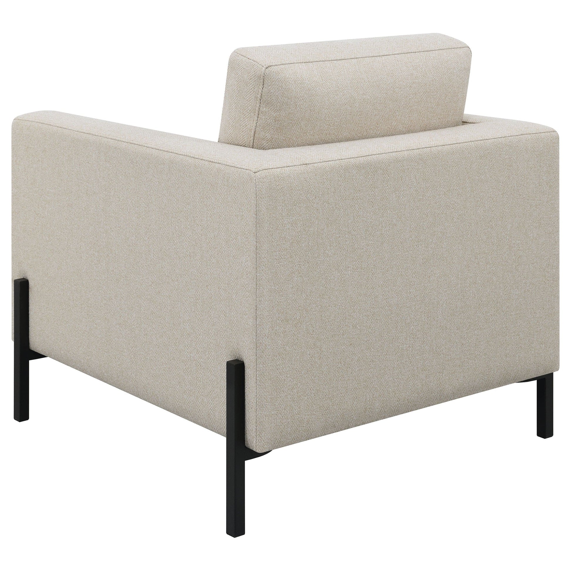 Introducing our meticulously designed modern sofa set, the epitome of luxury and comfort. Boasting clean lines and impeccable tailoring, its understated textured herringbone fabric exudes sophistication. The attached seats, built with pocket coil springs, promise unrivaled comfort, making every moment spent on the sofa memorable. Complemented by the stylish elevated metal leg base in a sleek black finish, this sofa set stands out not just for its beauty but also for its durability. Crafted with precision, it's an ensemble that's as inviting as it is elegant, ensuring your living space radiates contemporary charm. Dive into unmatched comfort and style.