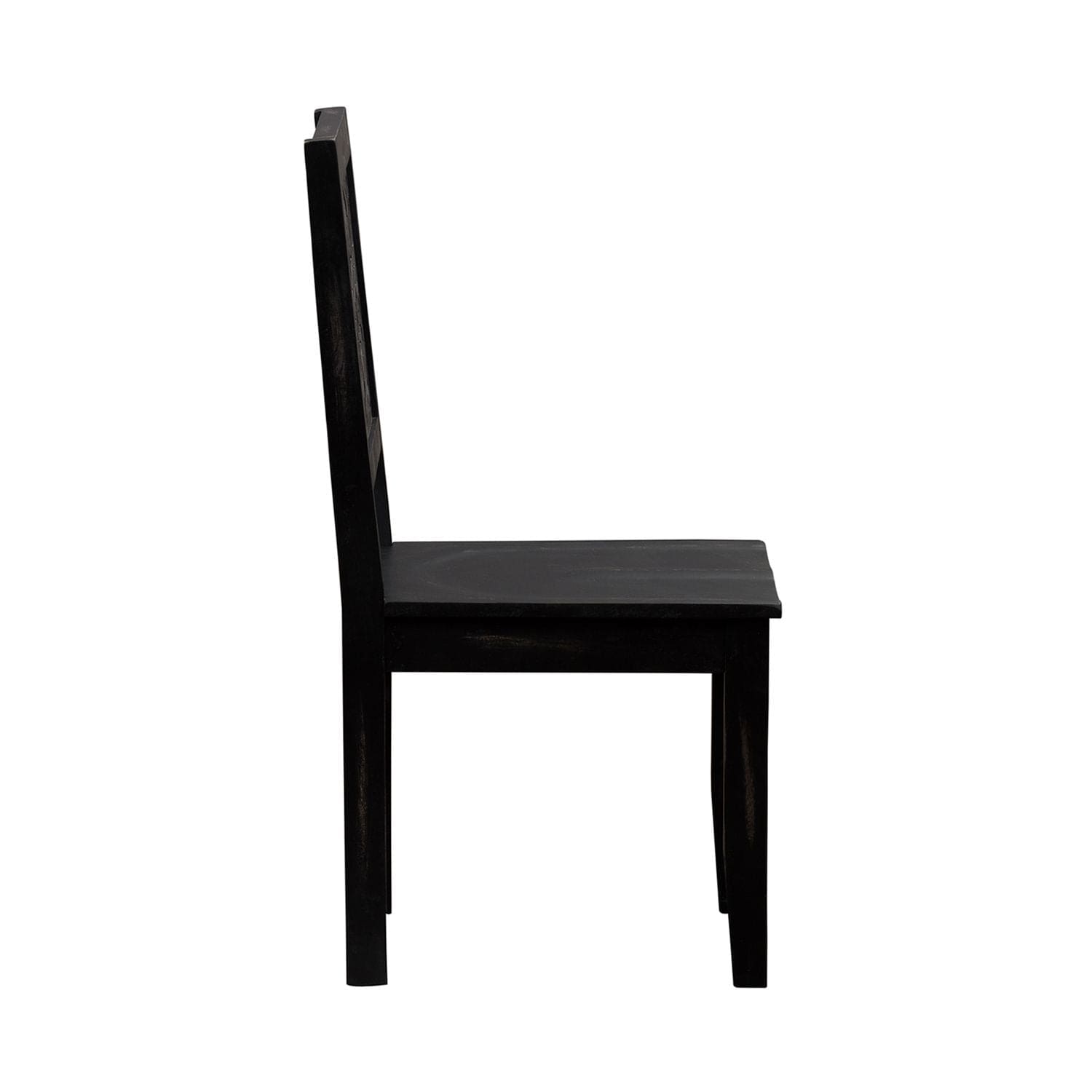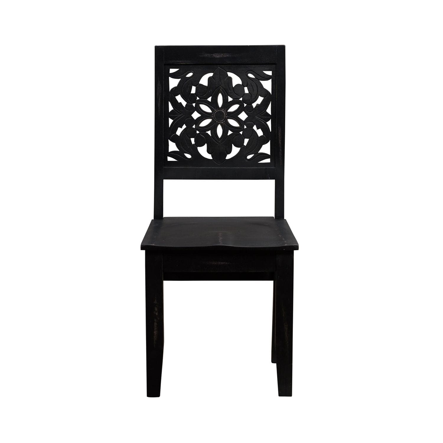 The Boho inspired Trellis Lane accent chair will make your room both functional and stylish. Crafted of solid mango in a Weathered Black finish with brown rub thru. Features artisan hand carved chair back, saddle shaped seat, and blocked tapered legs. Add the accent writing desk and bookcase to complete your look.
