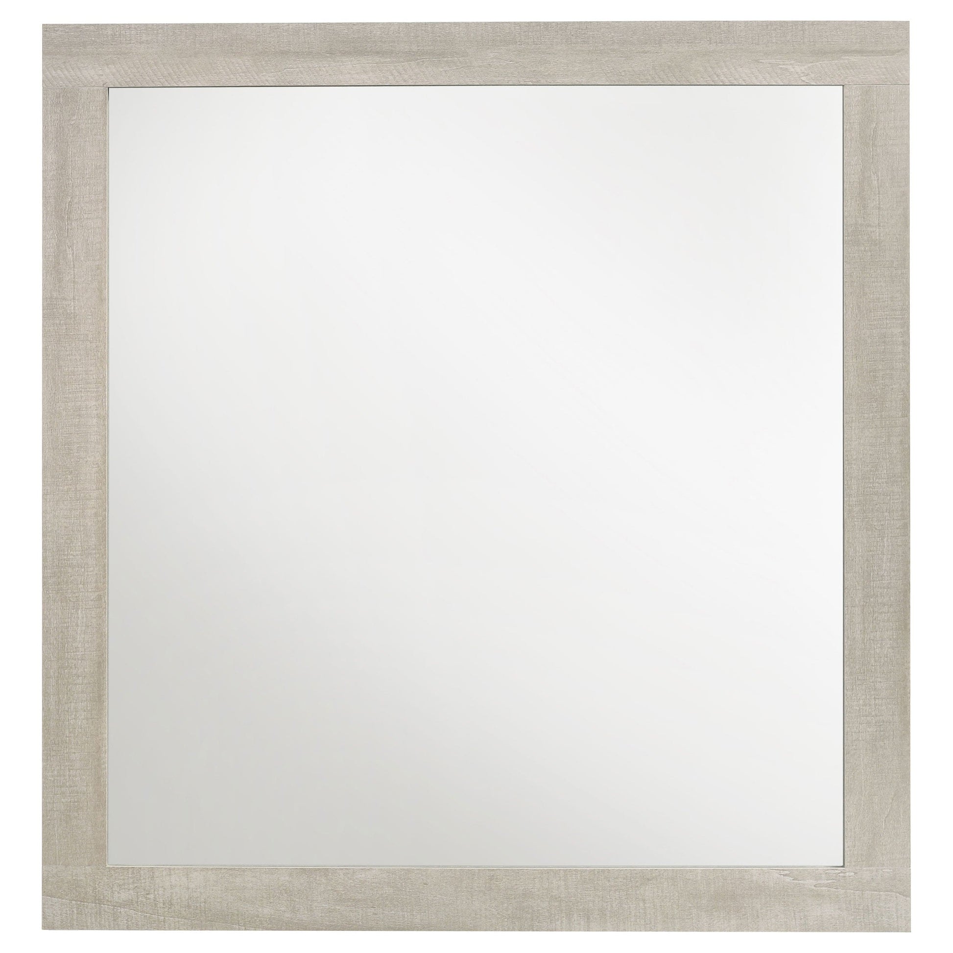 This contemporary mirror adds a refined touch to any bedroom with its clean, minimalist frame and rustic cream finish. Crafted with a rough-sawn, white-washed engineered paper veneer, it complements the dresser with its understated elegance. The mirror not only enhances the room’s brightness but also adds a sense of depth, making spaces feel more open and inviting. Perfectly suited for modern and rustic-inspired interiors, this mirror is the ideal finishing piece for a well-rounded bedroom setup.
