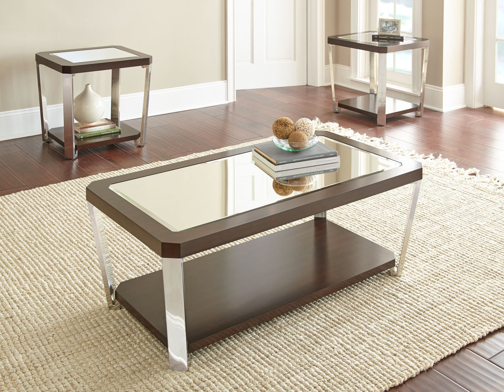 Your living room shines bright when your cocktail table is as clean-lined and all-out stylish as the Steve Silver Co. Truman Cocktail Table. Sophisticated yet refreshingly simple, this cocktail table is crafted of birch veneers in an espresso finish. A lower shelf provides ample space for magazines, home accents, or even a few board games, and you’ll love how the stainless steel legs and beveled mirror top lighten the look.