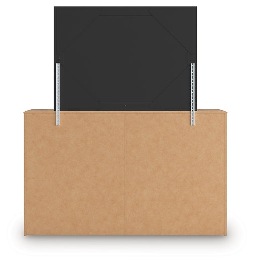 Chalanna King Upholstered Storage Bed with Mirrored Dresser