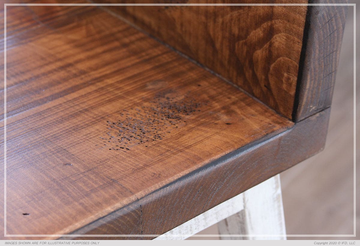 | Featured-2 | Inspired by rustic design, the Pueblo White barstools are crafted from solid pine wood, making them not only a perfect addition to your space but also a high-quality piece of furniture.Crafted of solid pine wood.Two-tone, multi-step lacquer finish with a weathered white effect on hand-distressed wood and brown seat.Mortise and tenon construction offer stability and durability.Height is 24 inches from the ground.Ships 2 per box, fully assembled. | |