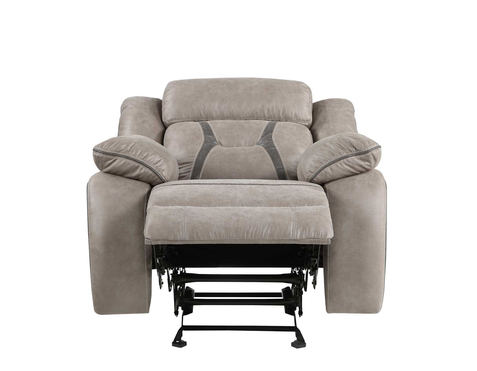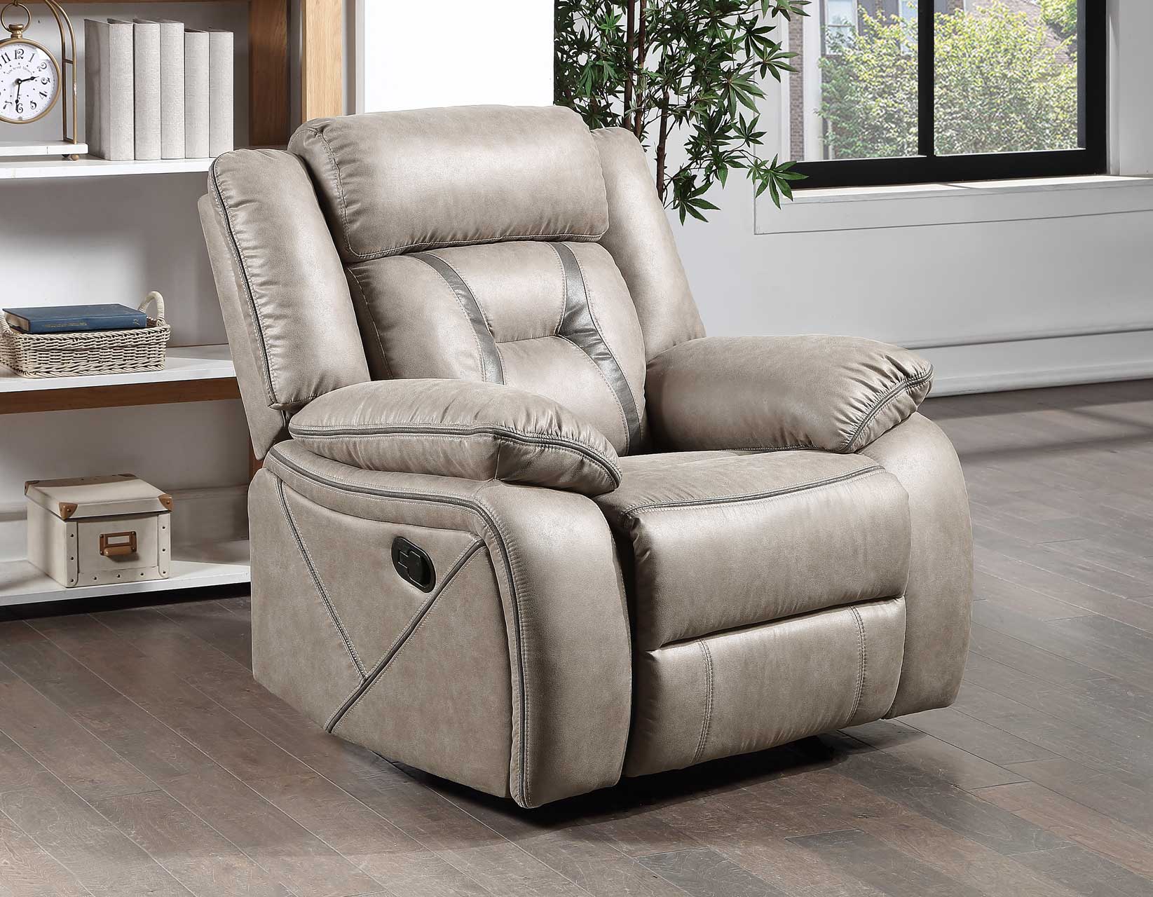 Comfortable and cozy, the Tyson manual reclining Glider Recliner provides a motion experience in a compact package. Reclining opens at the flick of the button and glides when closed. The grey leatherette cover is soft to the touch, breathes for added comfort and cleans easily with the wipe of a damp cloth.