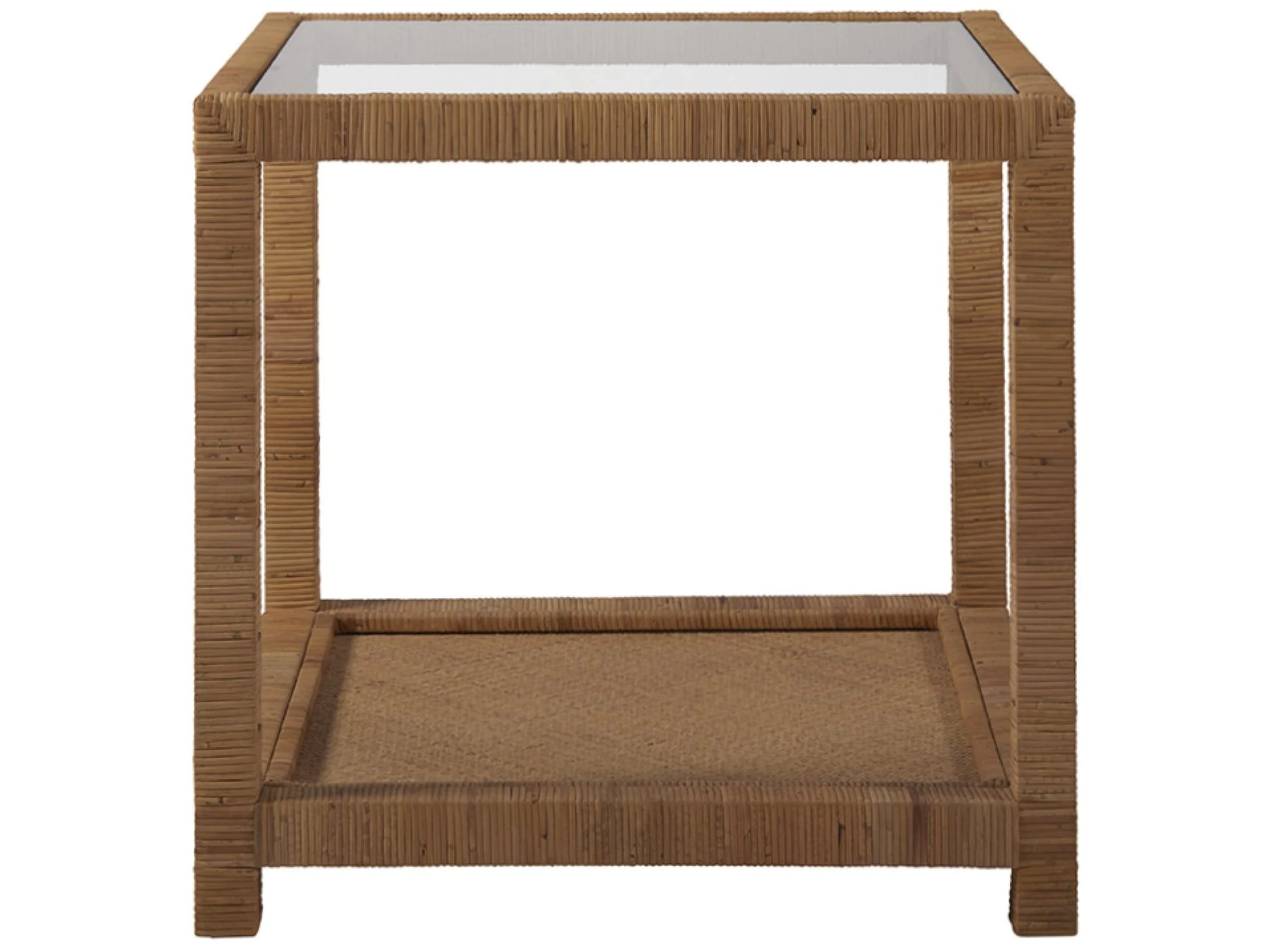 Bring a natural eloquence to living spaces with the Long Key End Table, an inspired home furnishing featuring a glass upper tabletop framed by a relaxed rattan body.