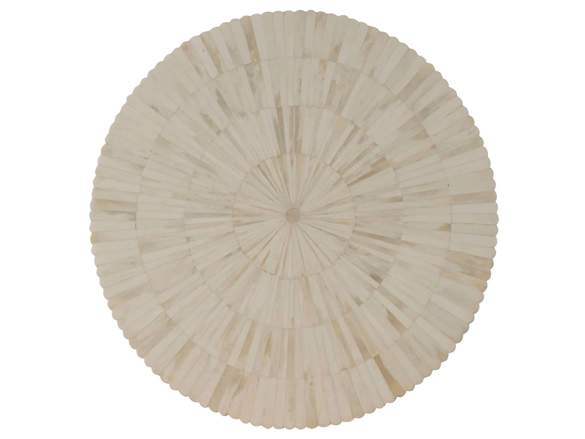 The Marcella Table captivates with its rounded silhouette, fully enveloped in Natural Bone, showcasing organic ridges that lend a light and airy essence. Its modern design is highlighted by subtle variations in tone, creating a piece that's as visually intriguing as it is elegantly crafted, perfect for adding a touch of refined natural beauty to any space.