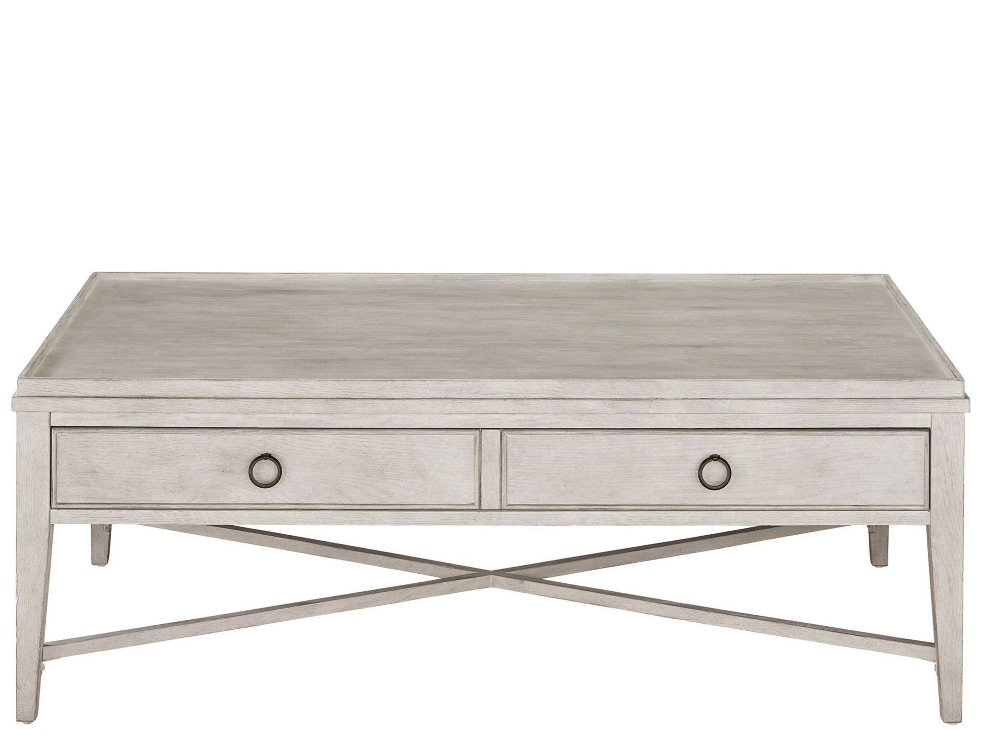 Anchor living areas with the Rectangular Cocktail Table, a seemingly simple silhouette full of subtle details including a criss-cross base and storage drawers accentuated by ring pull hardware.
