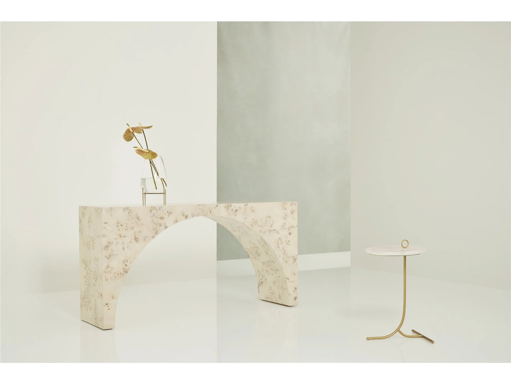 Delicate and ethereal, the Rose Quartz Accent Table will instantly add sophistication to any living space with its fine gold frame and sleekly rounded tabletop.