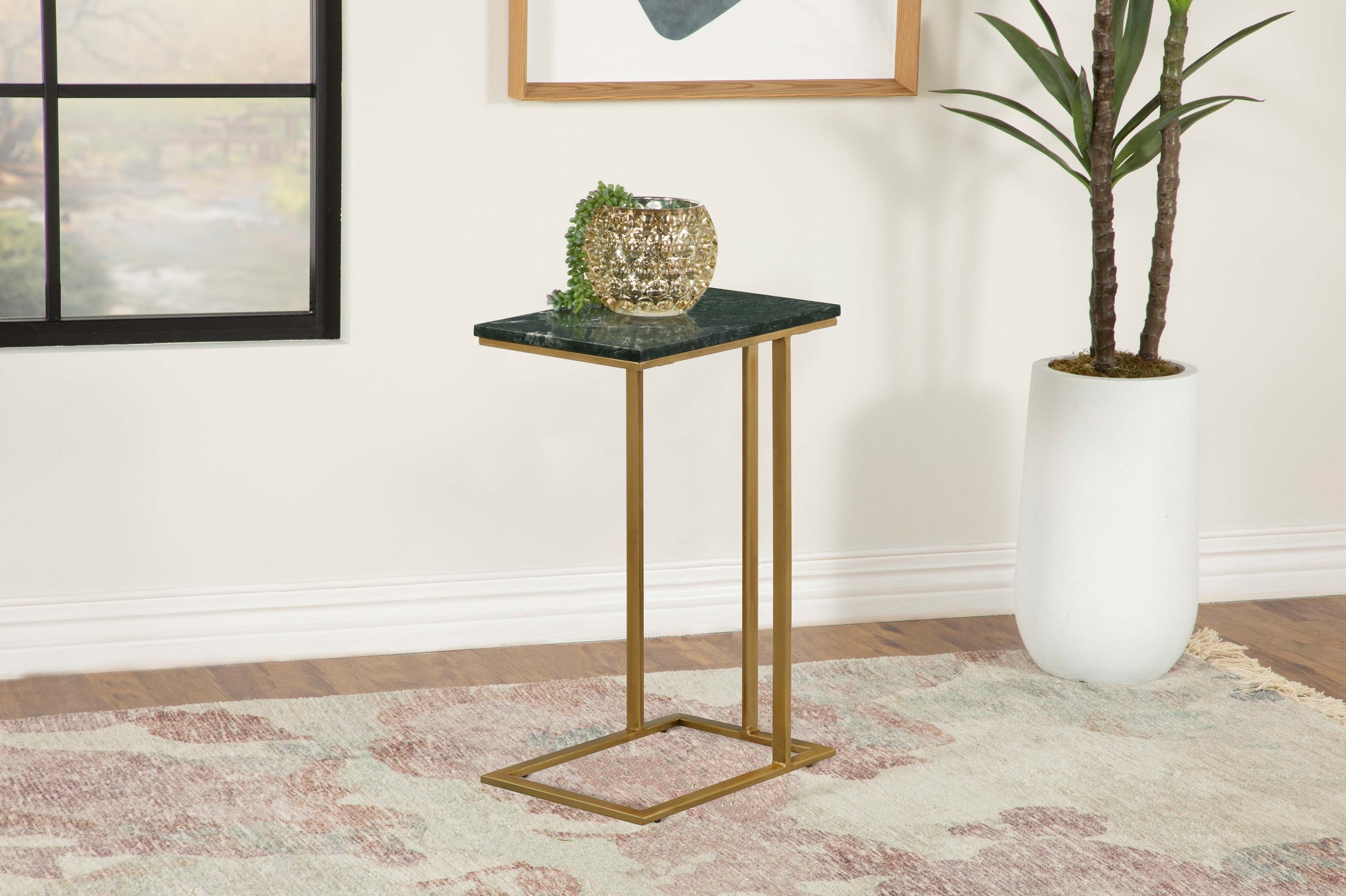 • Contemporary C-table design featuring a genuine, green marble top for a sleek, modern look