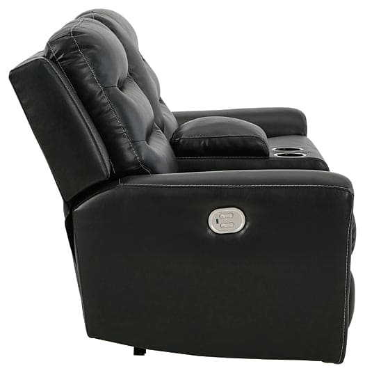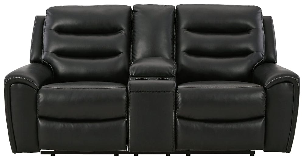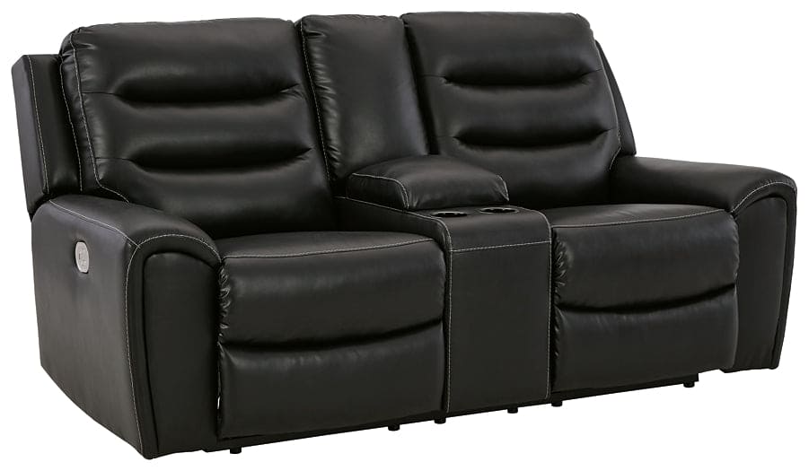 With its decidedly contemporary styling, this power reclining loveseat with console has a sleek sensibility that seamlessly elevates your living room aesthetic. Explore endless possibilities for comfort with its one-touch power control, zero-gravity reclining and adjustable headrests. A triple-tier back and chic black upholstery round out this simply stunning piece.