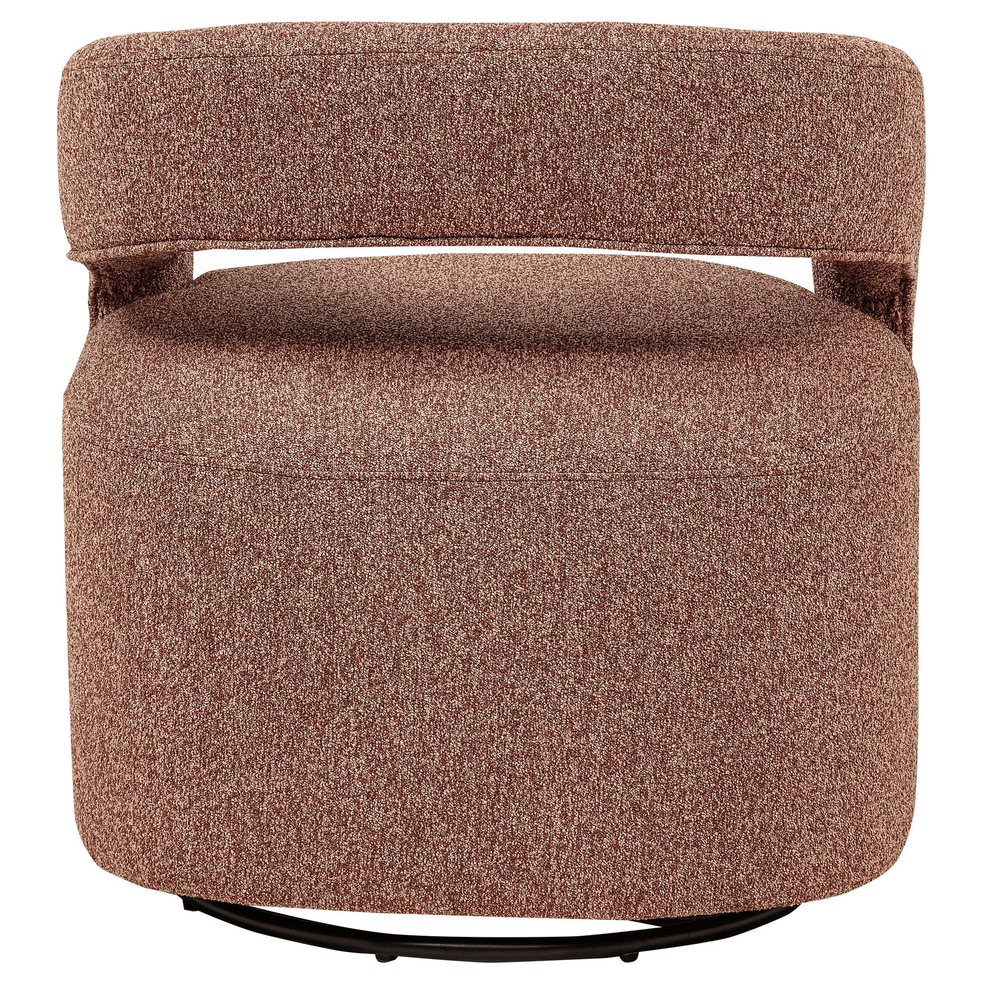 Curved form meets effortless movement in this modern swivel accent chair. With a rounded open back and tailored seat, it delivers sculptural balance and all-around comfort. Upholstered in textured boucle and built on a hidden swivel base, it glides smoothly to support dynamic living. Its compact footprint and graceful silhouette make it ideal for layering into lounge corners, reading nooks, or open floor plans seeking softness and versatility.