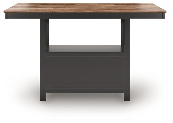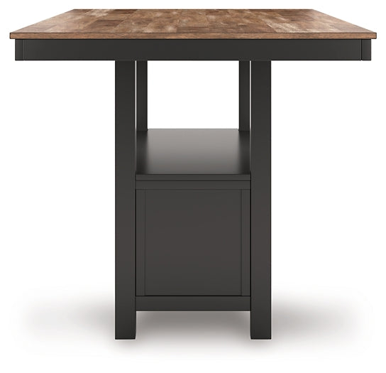 This counter height dining table dresses up your favorite farmhouse motifs with modern flair. A butcherblock-style top provides ruggedly chic contrast to the sleek black base. Short on storage space? The pedestal’s built-in cabinet, with doors on each side for easy access, keeps essentials within reach.