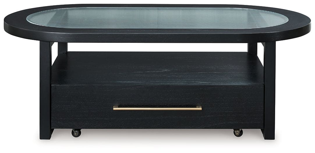 If you are a lover of simplicity, the Winbardi coffee table is the perfect choice. Its black finish, casual contemporary design and spacious storage capacity provide functional style wherever it’s displayed. And with casters for easy mobility, it's easy to change up your furniture layout when you have a burst of creativity.
