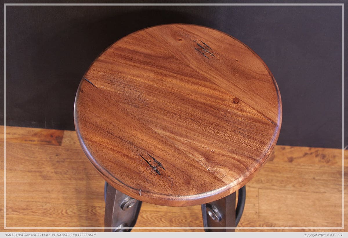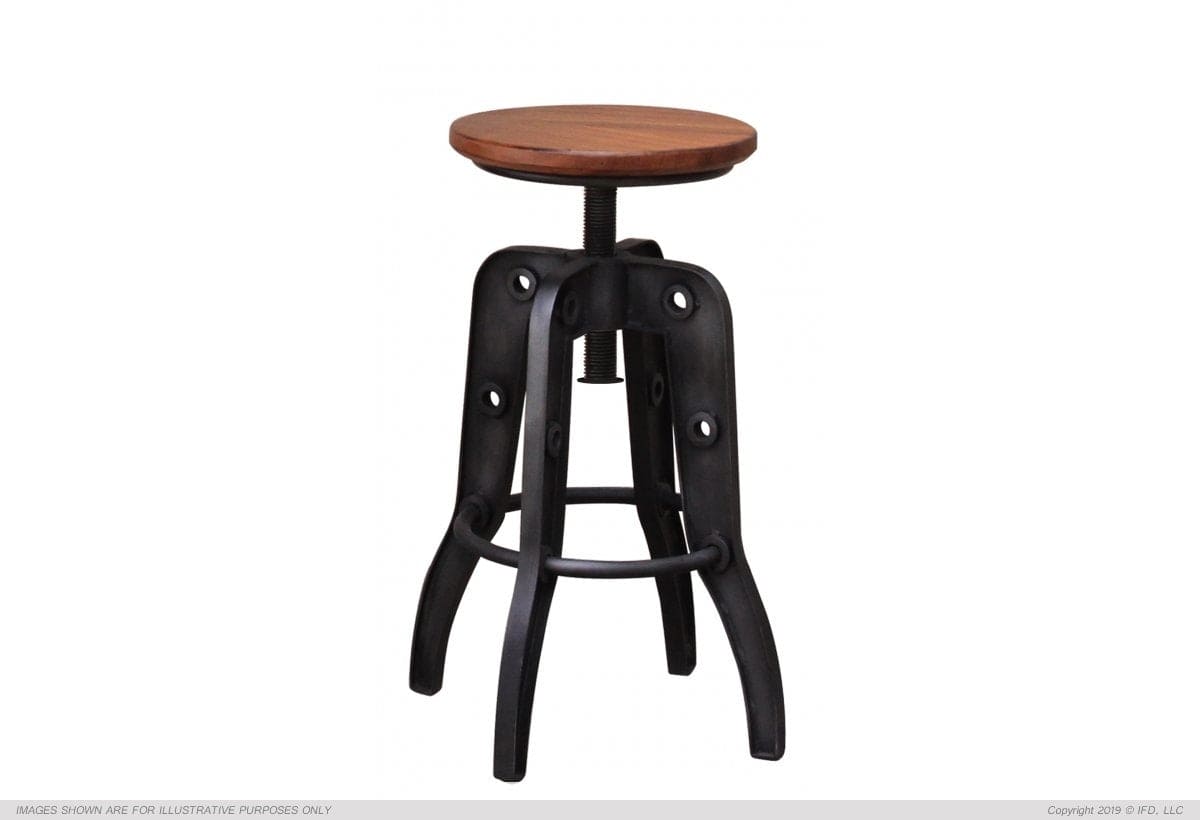 | Featured-2 | · IFD866BS2430 adjustable height provides versatility.· 100% solid parota wood on seat.· Wrought-iron base is hand forged one by one by our skilled artisans.· Varying wood grain, wood tone and knots also add character to the wood’s appearance without affecting the stability or integrity of the wood.· Clear lacquer on top protects the natural tone of wood.· 24” to 30” Adjustable height.Ships 1 per box, fully assembled. | |