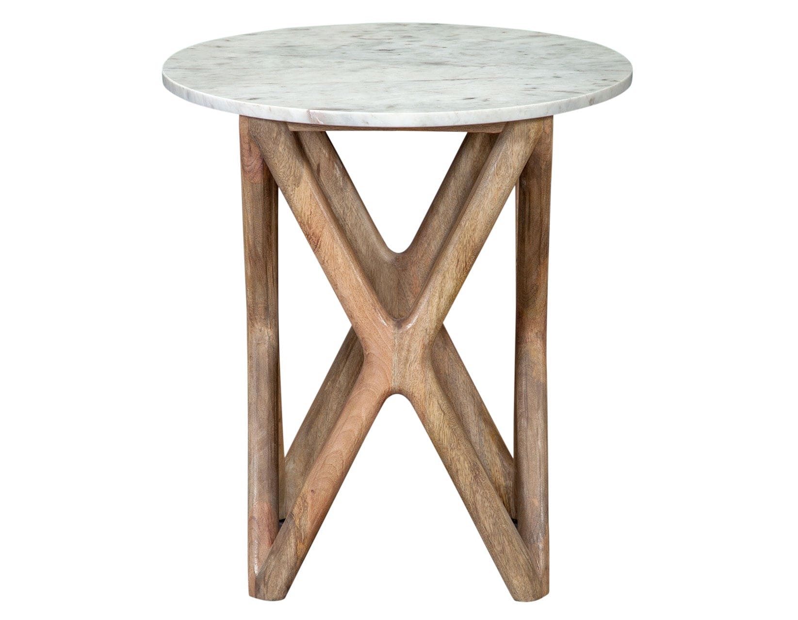 The Wyman Table Set seamlessly blends expert craftsmanship with refined elegance, featuring a 36″ round cocktail table and 20″ round end tables. Each piece boasts a 16mm solid Banswara white marble top with a polished surface for a sophisticated touch. The hand-carved honeycomb bases, crafted from solid mango wood with a natural stain, add organic, rustic charm. Natural variations in marble and wood grain make every table unique. Built for durability and timeless appeal, this set completes a room with a cohesive, artisan-inspired centerpiece for any space.